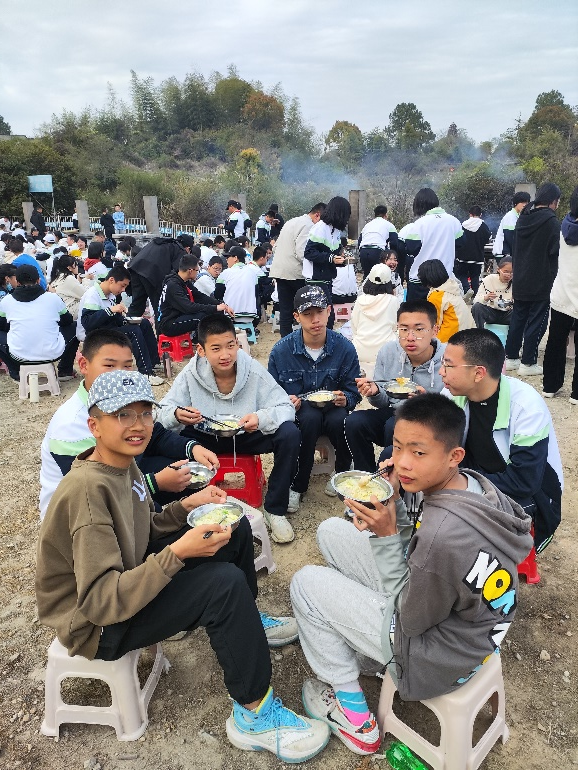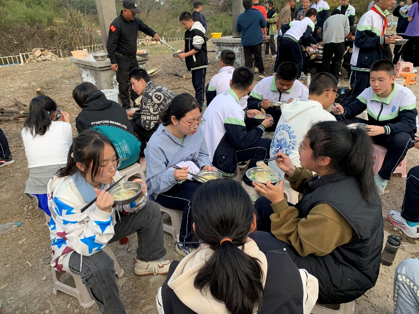 参加野外徒步拉练时,同学们分工明确,团结一心。许多热心的同学还在爬山的过程中互帮互助,主动承担起帮助其他同学、老师的任务。在经过陡坡山路时,只要他人需要帮助,他们都能主动伸出援手,互相搀扶前行。虽然很累,但同学们却感到心更近了,团结一致携手向前,给原本枯燥的翻山越岭之旅增添了满满的暖心之意。