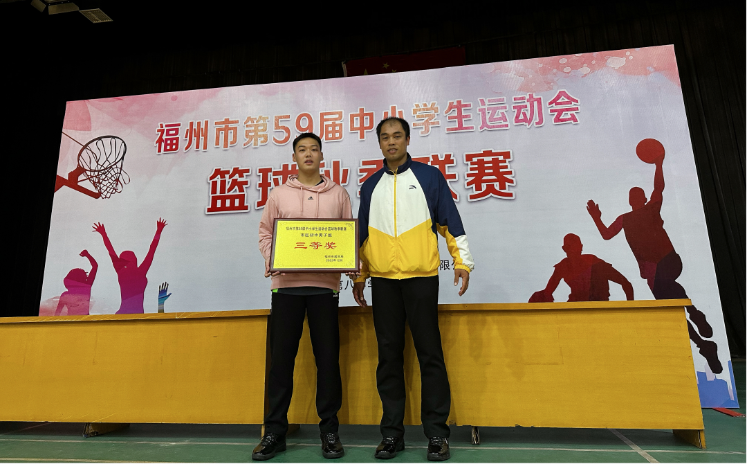 3月12日,福州市第59届中小学生运动会篮球秋季联赛市区初中男子组比赛圆满落幕,我校男子篮球代表队发挥拼搏向上、不懈奋斗、团结一心的体育精神,获得福州市区初中男子组三等奖!