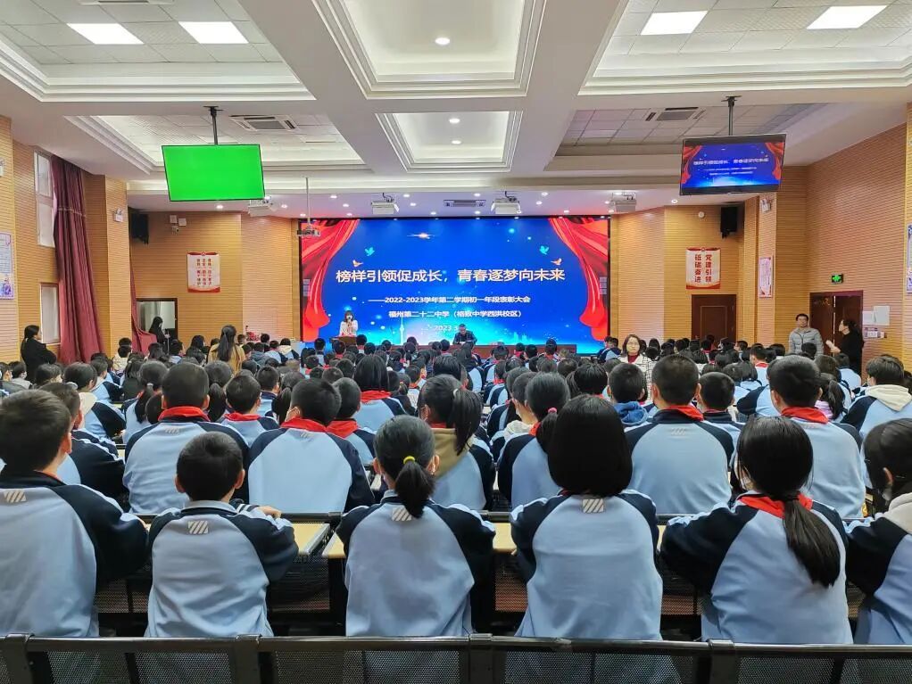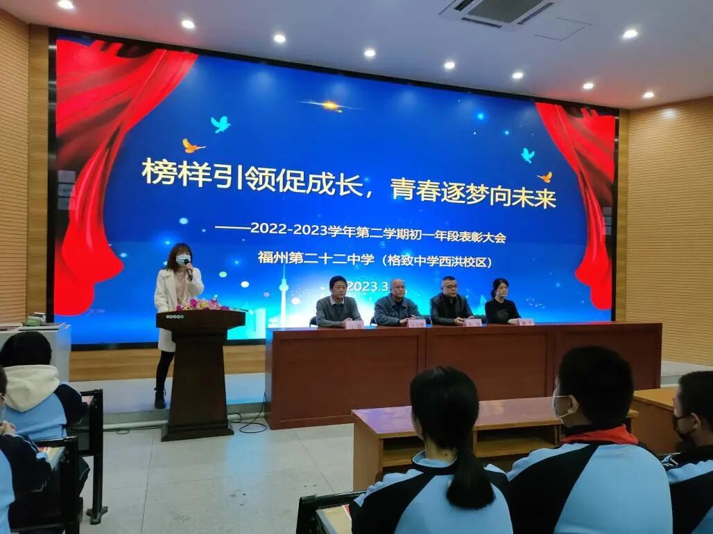 春回大地,万象更新。为进一步激发全体同学的学习热情,营造浓厚的学习氛围,2022年3月2日下午,初一年段在校阶梯教室举行了以“榜样引领促成长,青春逐梦向未来”为主题的初一年段第二学期表彰大会。陈琛书记、陈龙耀校长、林予副校长、陈磊副校长参加了此次表彰大会,大会由团委书记、初一年段长陈晓霞老师主持。