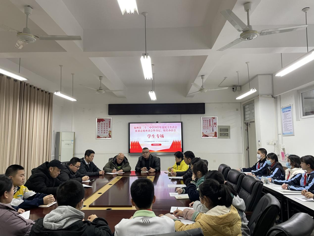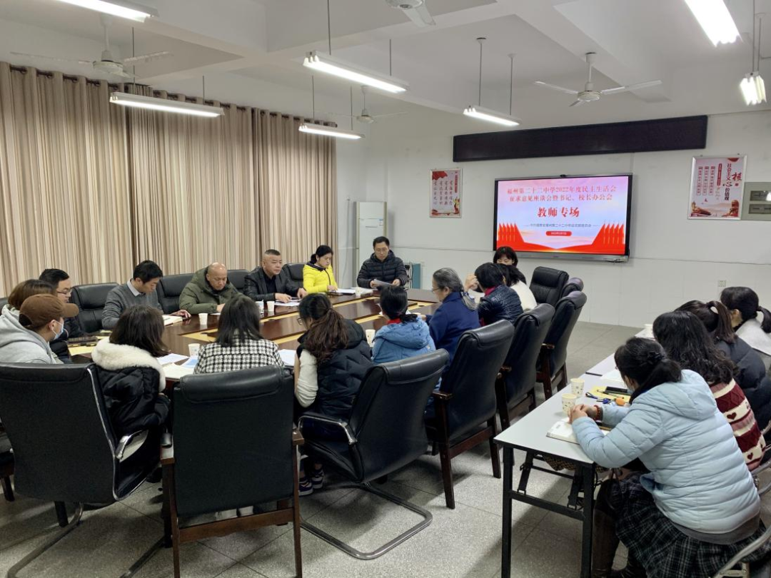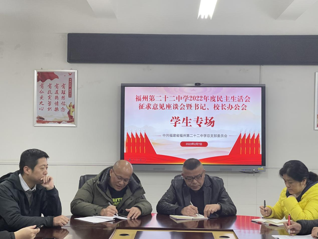 2023年2月7日,我校先后召开了2022年度民主生活会征求意见座谈会教师专场和学生专场,全体校领导班子成员和各处室中层干部参加了会议,会议由办公室刘俊杰主任主持。