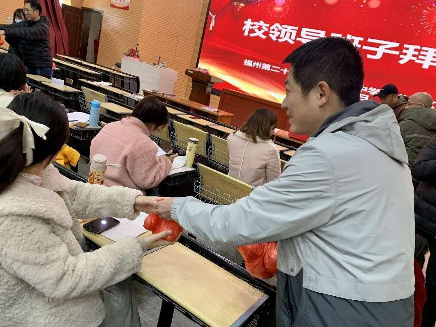 随后,校领导班子携中层干部为全体教职工送上精心准备的太平面和太平蛋,希冀大家这一年平平安安,吉祥如意。