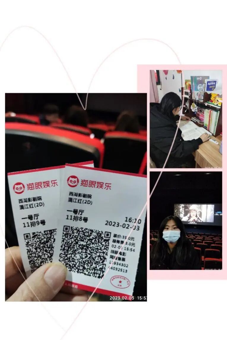 同学们利用寒假时间在家中积极观看优秀电影、书籍,主动接受优秀文化的熏陶,培养爱观影、爱读书、爱学习的良好习惯,增加知识储备,促进学习能力的提升。