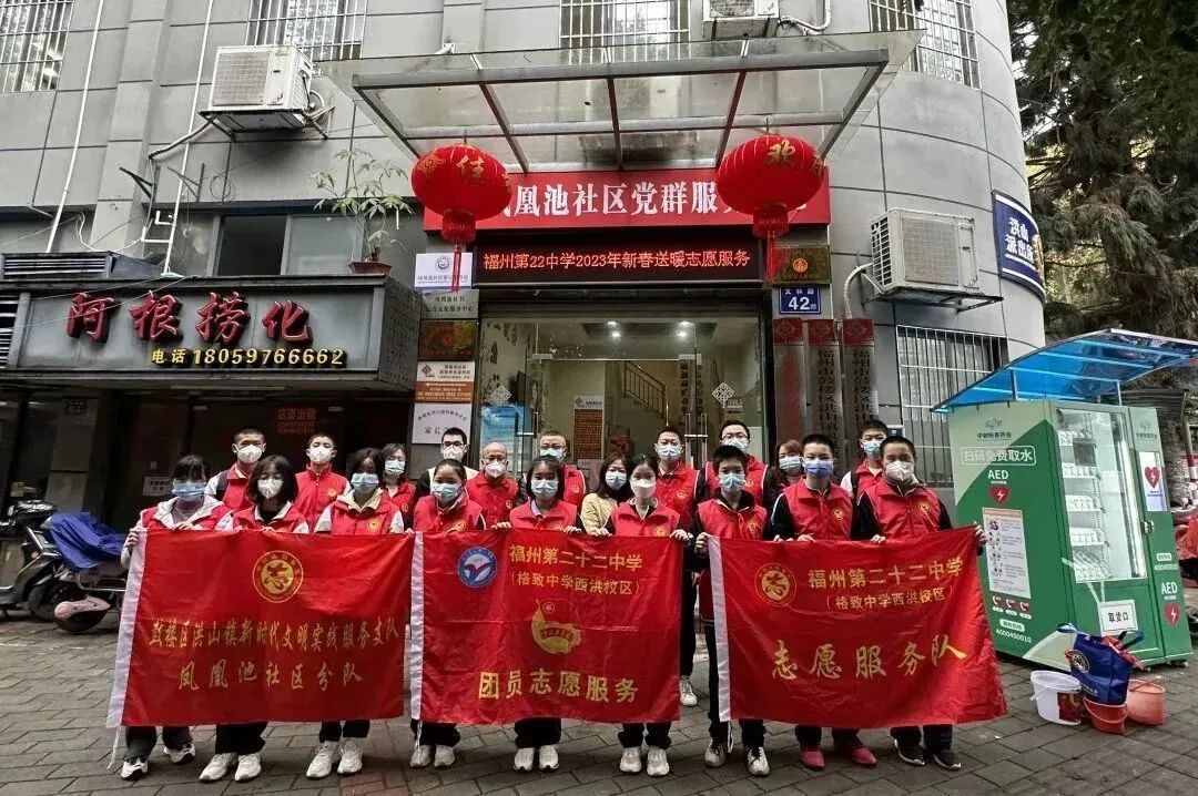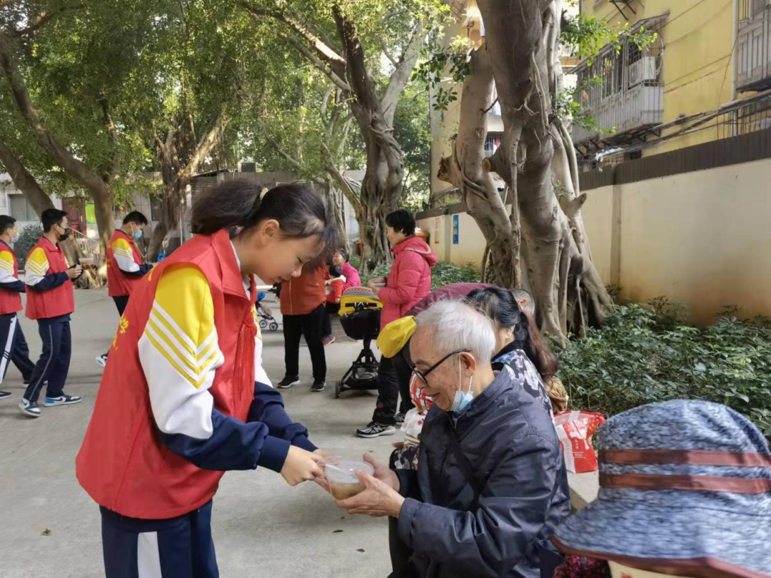 我校学生积极参与社区、社会志愿劳动活动,树立“主人翁”意识,提升道德感和社会责任感,为社会献出自己的一份力。如参与凤凰池社区新春送暖活动、雷锋纪念日社区志愿活动、“文明创城,一盔一带”主题志愿活动、社会常态化垃圾分类活动等。