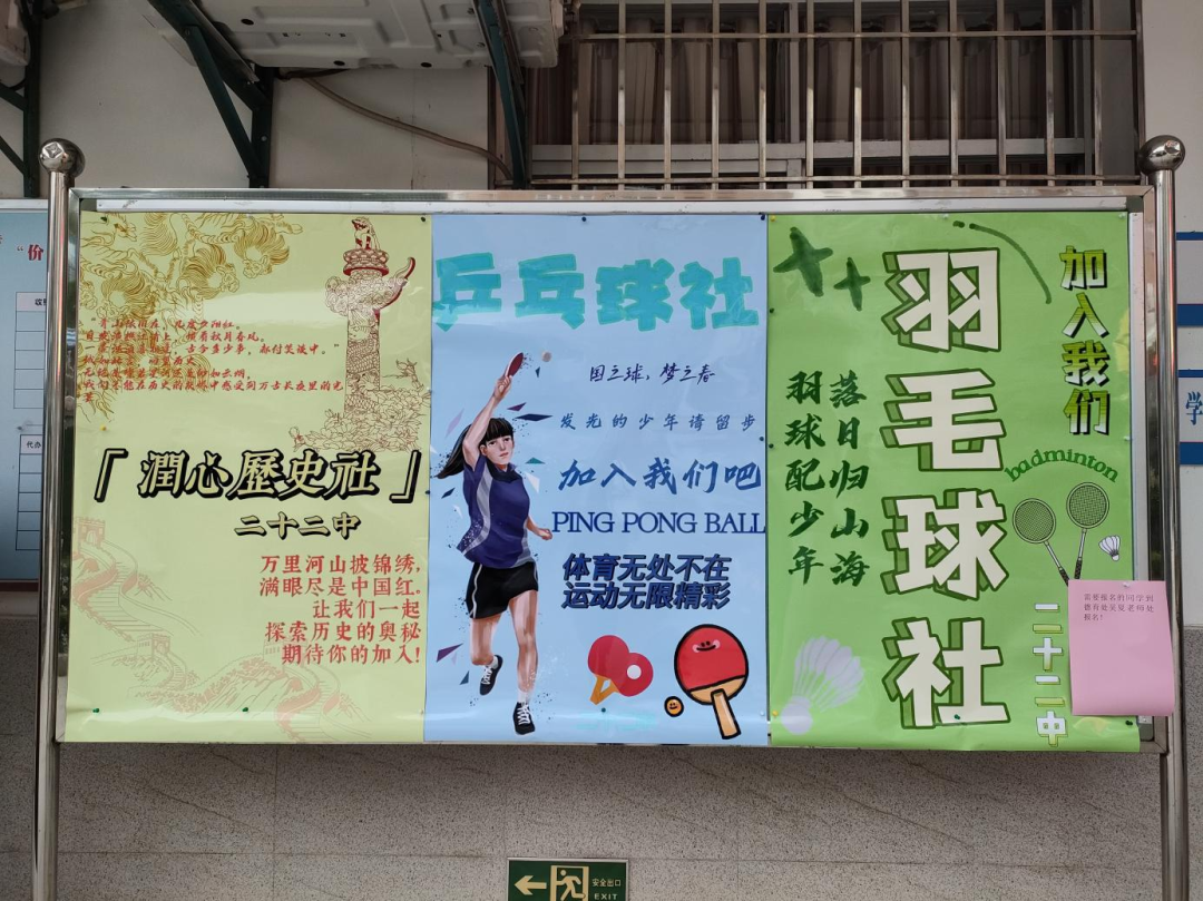 2022年11-12月,我校积极开展乒乓球社、羽毛球社、润心历史社等社团纳新活动。