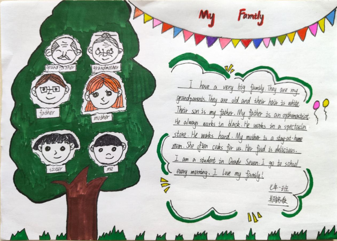 家风家训是中华优秀传统文化的精粹,是践行社会主义核心价值观的重要载体。七年级英语集备组让学生们完成英文版的族谱设计,希望学生们借此机会进一步了解自己的家人,做好优良家风家训的传承人,感恩先辈,吾爱吾家。
