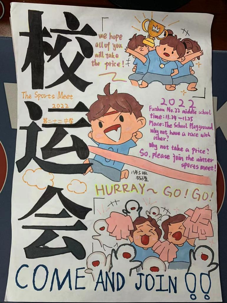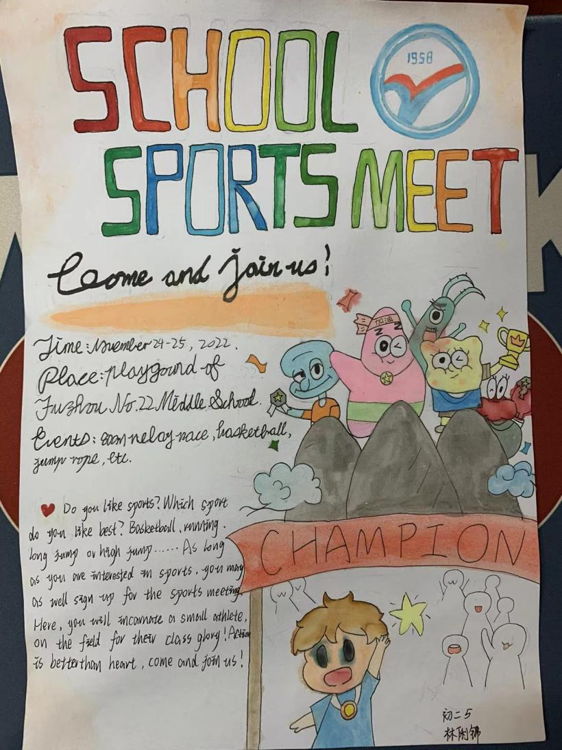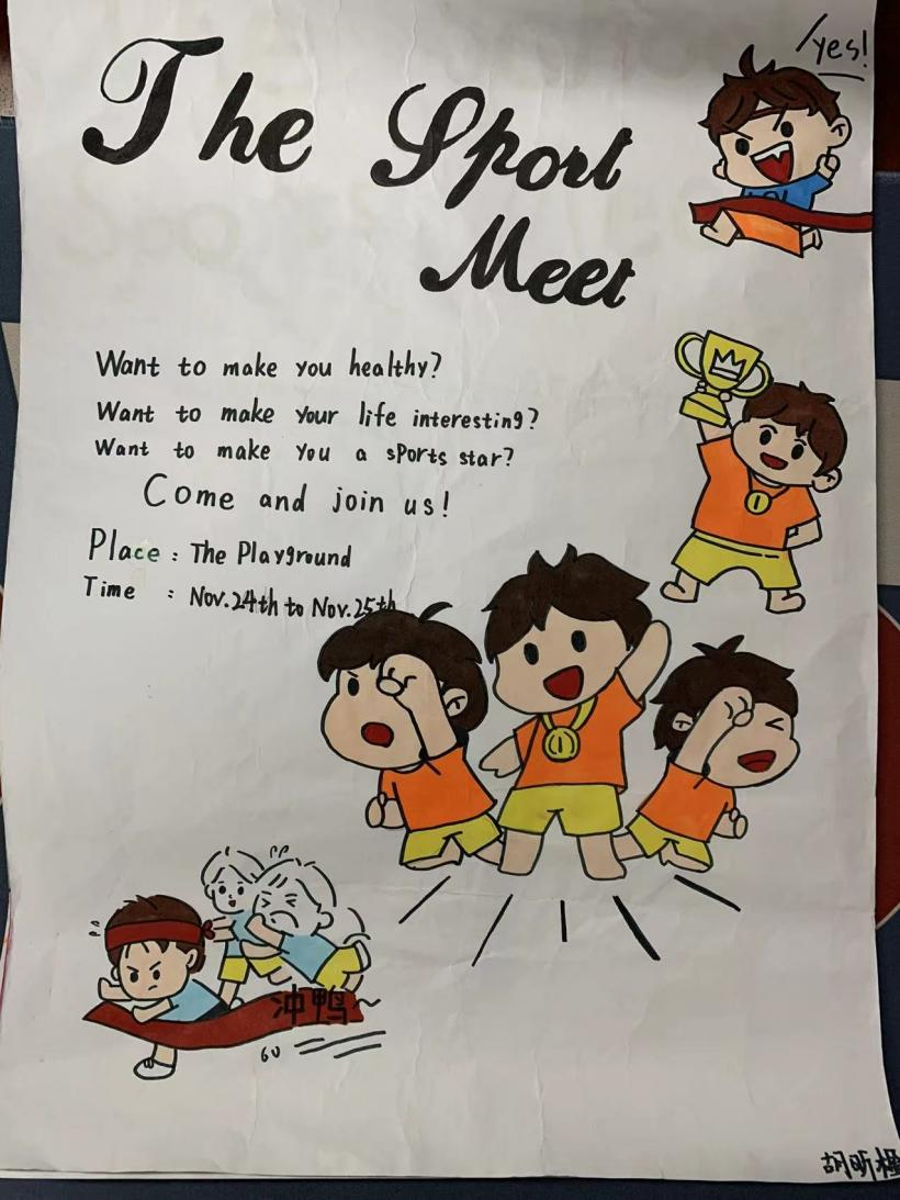 无运动,不青春。初中阶段正处于青少年的高速发展期,运动至关重要。八年级英语集备组抓住学校筹备运动会的契机,布置学生设计英文版运动会海报,学生们用高涨的运动热情用心完成了一件件作品。他们希望用作品传达“青春因运动而精彩,生命因运动而蓬勃”的真谛。