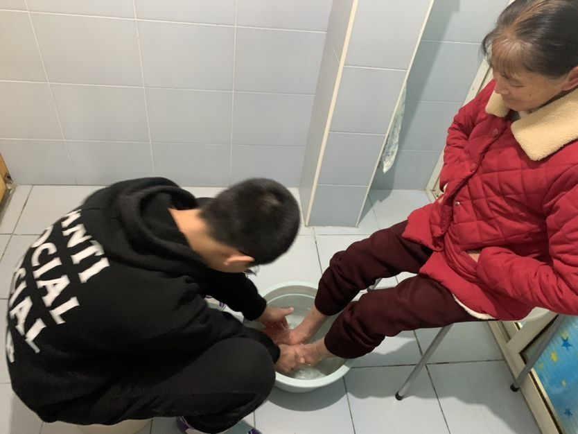传统佳节齐团聚,孝老爱亲情意浓。在阖家团圆之时,同学们践行中华传统美德,为长辈们端茶倒水,捶背洗脚,让辛劳的长辈们感受到来自晚辈浓浓的爱意。