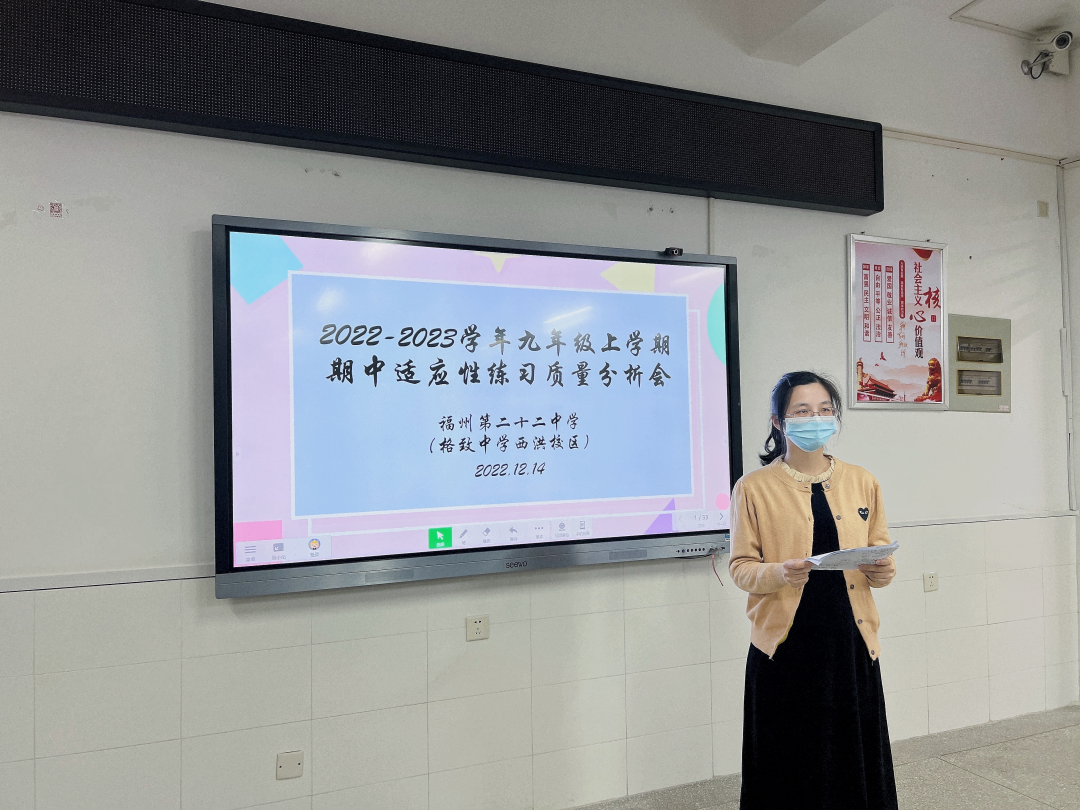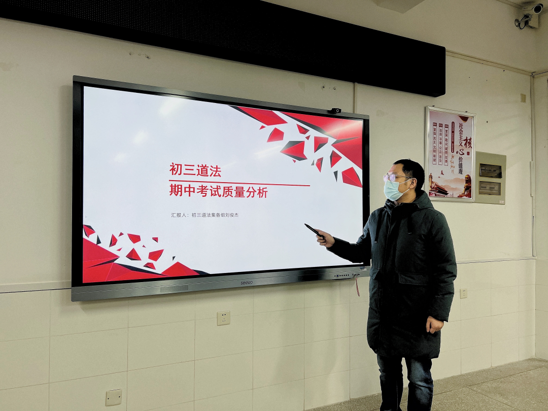 倪婷段长详细分析了期中适应性练习的考情,并针对各班实际情况提出了精准教学与精准学习相结合,课堂规范管理与学生思想动员相结合,良好的班风学风与家长配合相结合等建议与措施。