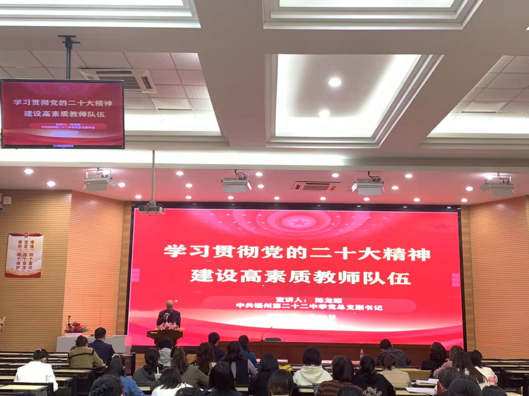 为深入学习贯彻党的二十大精神,陈琛书记面向全体教职工以《学习二十大精神、助力扬帆再起航》为主题,为大家讲授了一堂精彩的党课。