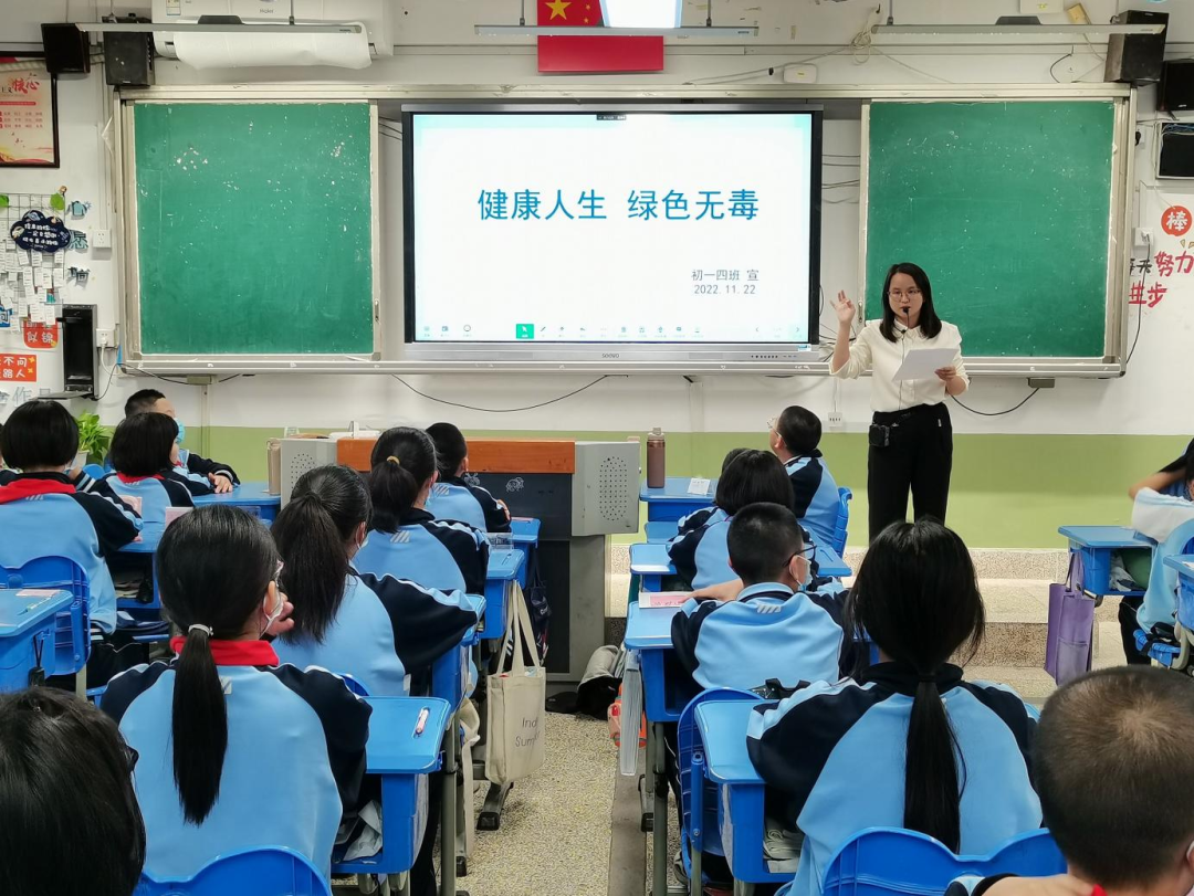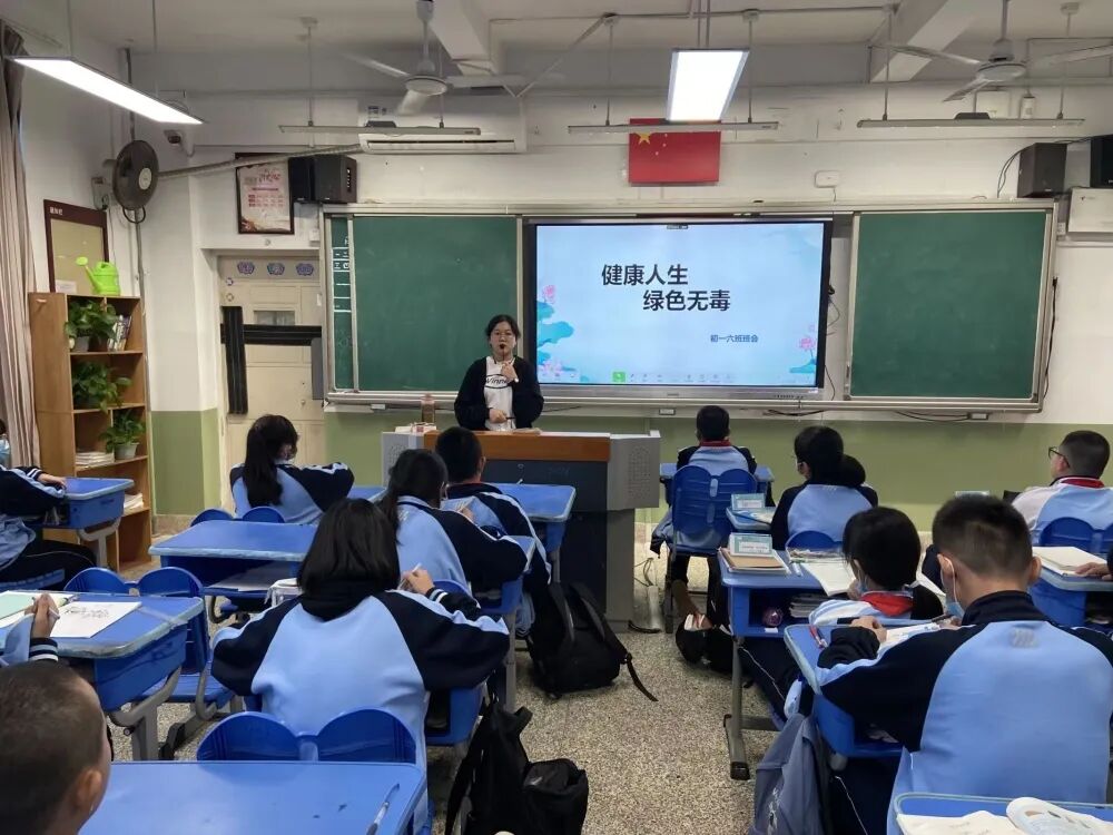我校充分结合新时期学生特点,精心设计“健康人生,绿色无毒”禁毒主题班会。通过图文资料、视频等展示,让同学们充分认识到毒品对个人、家庭和社会的严重危害,增强了学生们识毒、防毒、拒毒和禁毒的意识和能力。