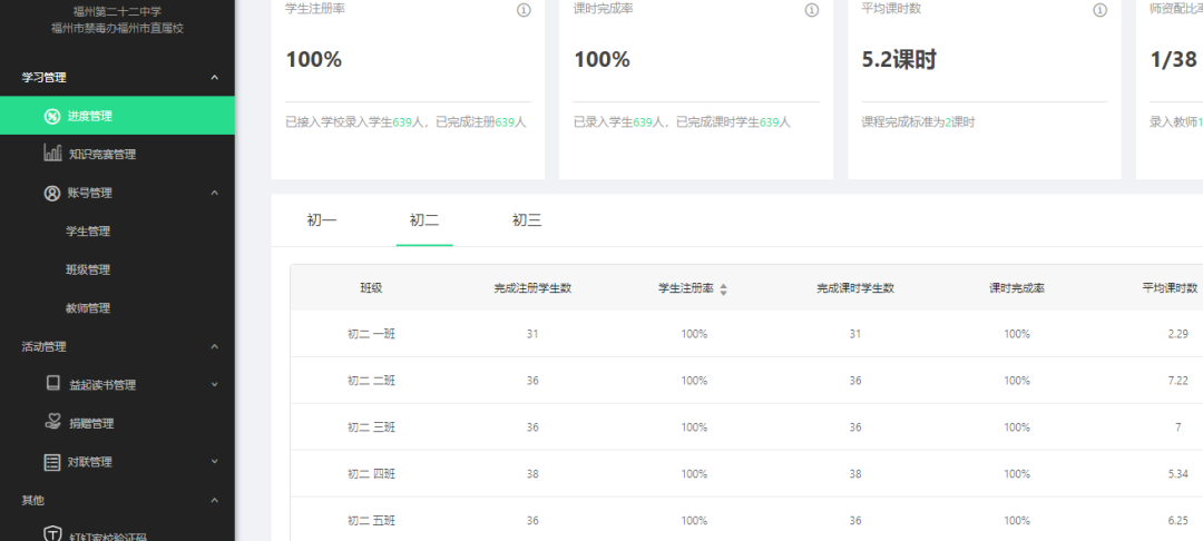 我校按照按照《中小学生毒品预防专题教育大纲》《中等职业学校德育大纲(2014 修订)》要求,在完成禁毒专题课时的基础上,积极组织开展禁毒知识答题活动。2022年全国青少年禁毒知识竞赛我校学生参与率达到100%。