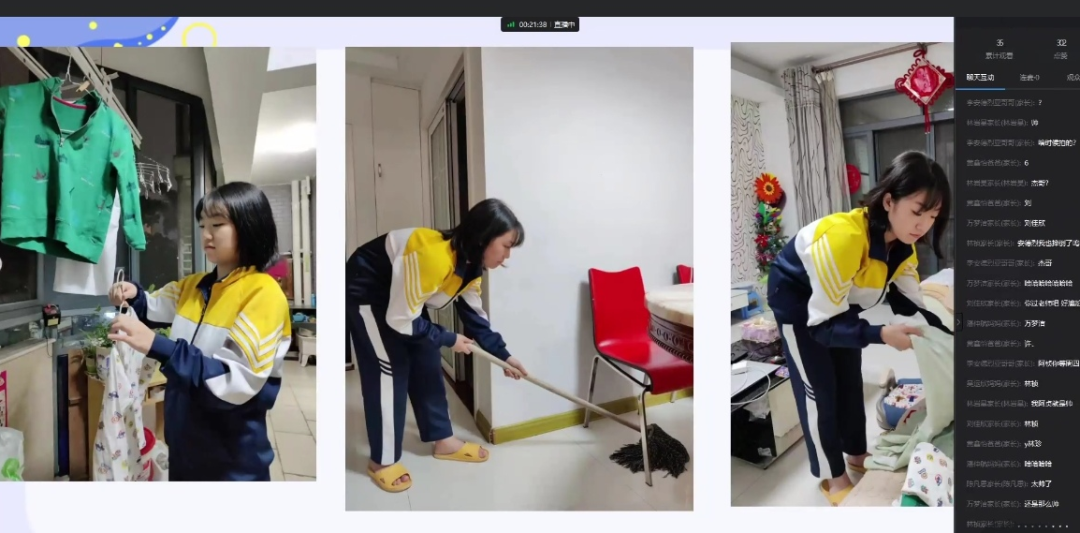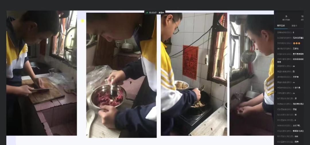 在班会中肖岚老师挖掘孩子们的闪光点,交流正确面对压力的方法,分享学生们下厨、种花、手工的好时光,引导同学们热爱生活,珍视生命,养成积极乐观的心态。