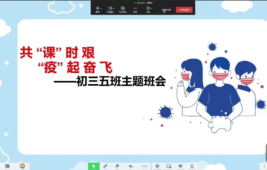 班会是思政工作的主要阵地,虽然云端课堂不能见面,孩子们的身心健康是班主任心之所系。肖岚老师努力让班会课走进学生心灵,以学生喜闻乐见的形式开展班会。无论是正能量的励志语录,温暖动情的视频,身边关注的新闻时事,同学们的运动锻炼都可以成为班会的素材。