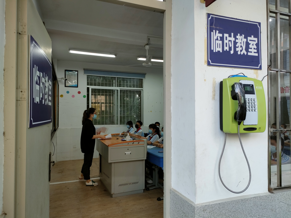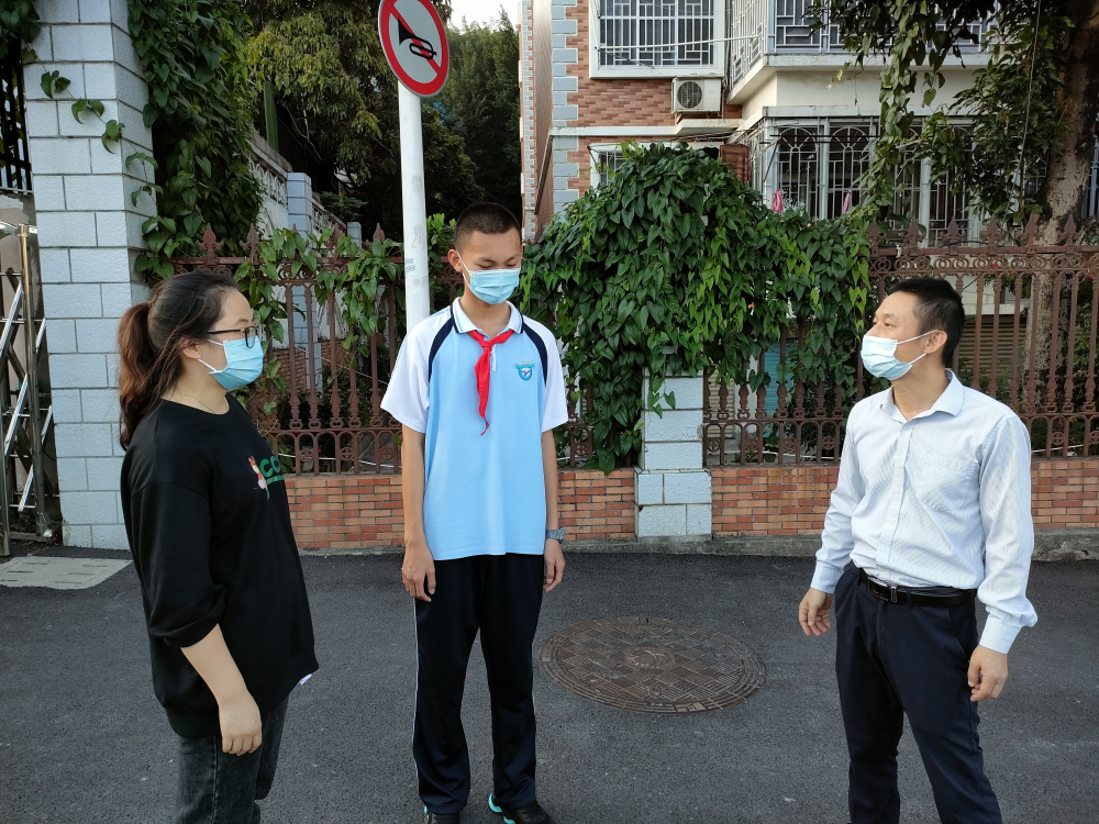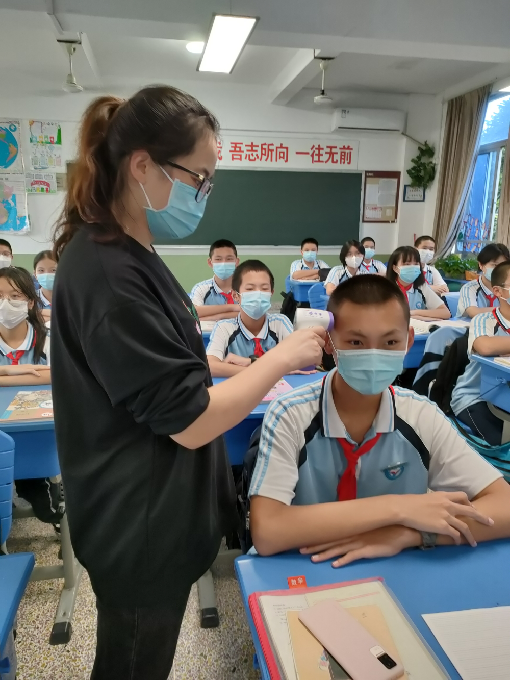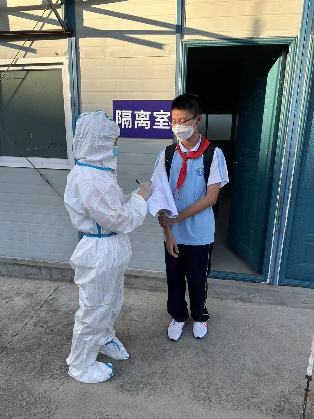 入校晨检时,值班老师发现一名学生体温异常,有低烧现象,立刻将其转移到校门口的隔离处,并第一时间通知值班领导、校医以及该学生的班主任,校医详细询问并登记学生的具体信息,再次对其进行体温测量。班主任立刻赶到隔离点,并拨打电话告知学生家长,值班领导第一时间将学生情况上报至学校疫情防控小组。