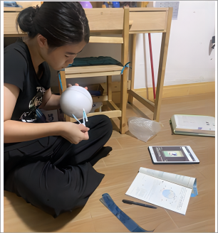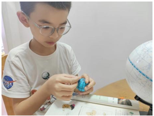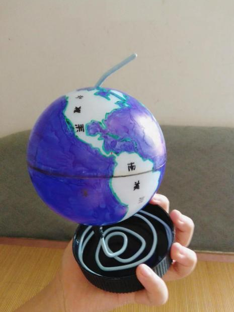 同学们充分利用身边的材料,如乒乓球、泡沫球、黏土、铁丝等来制作地球仪。成果色彩亮丽、独具特色,从选材、设计与制作上充分体现了学生的认真和专注。