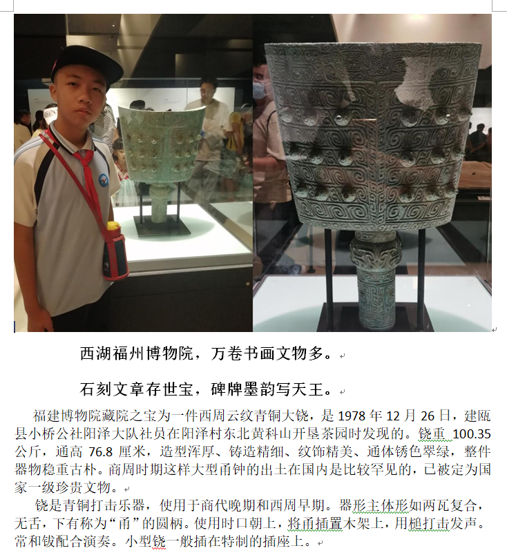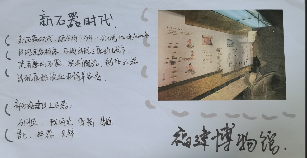 福州是国家历史文化名城,建城已有2200多年历史,孕育出了以昙石山文化、中国船政文化等诸多闽都文化品牌。八年级历史集备组以“走走逛逛,认识历史名城福州”为主题开展综合实践作业活动。将学习的舞台从传统课堂延伸到了广阔的社会“大课堂”,引导学生走进博物馆,走进街边坊巷去认识有温度的历史,加深了学生对传统文化、家乡历史地理文化的认识和感悟,也激发了学生热爱家乡、热爱祖国的情感。