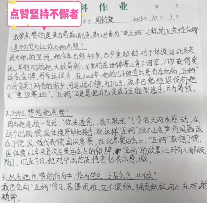 在这个世界上,有一群人,他们无私奉献、充满积极向上的力量,为我们的社会注入无尽的活力。他们可以是坚守在各行各业的普通劳动者,可以是为国争光的体育健儿,也可以是身边的老师同学,初二的道法学科以“正能量,为他们点赞”为主题,让同学们寻找正能量、发现正能量、记录正能量、传承正能量。同学们将他们的所思所想形成一篇篇文章,在致敬正能量者的同时,也让优秀的精神品质在心里扎根。