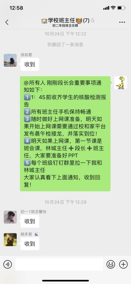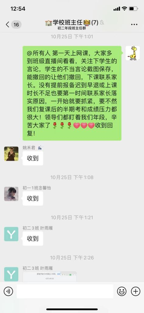金秋十月,突如其来的疫情给校园生活按下了暂停键。为了使学生安心“在家学”,实现“停课不停学”,落实学校下达的“离校不离岗,停课不停学”任务,确保能够实现线上教学任务正常进行,我校教师承担起为人师者能尽当尽的职责,用爱心和责任心撑起学生居家学习的保护伞,陈清燕老师就是其中一员,在身兼数职的情况下,全力以赴,坚守着自己的责任,用实际行动诠释了责任与担当。