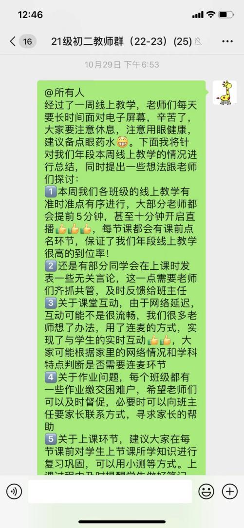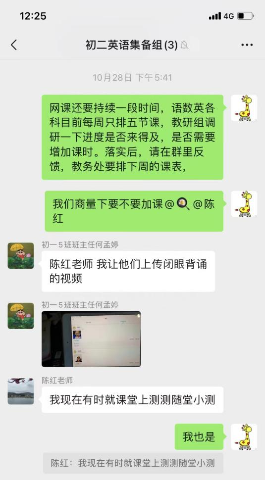 兼任英语组教研组长,陈清燕老师及时向组内老师传达学校的各项通知安排,解决组内老师的疑问。积极参与线上教研活动和集备活动,凝聚全组力量,确保线上教学万无一失。