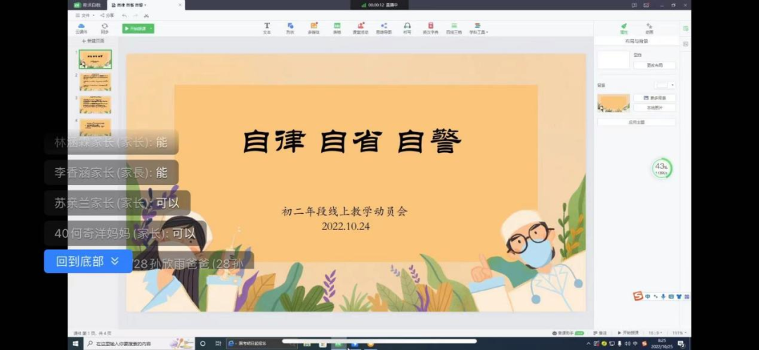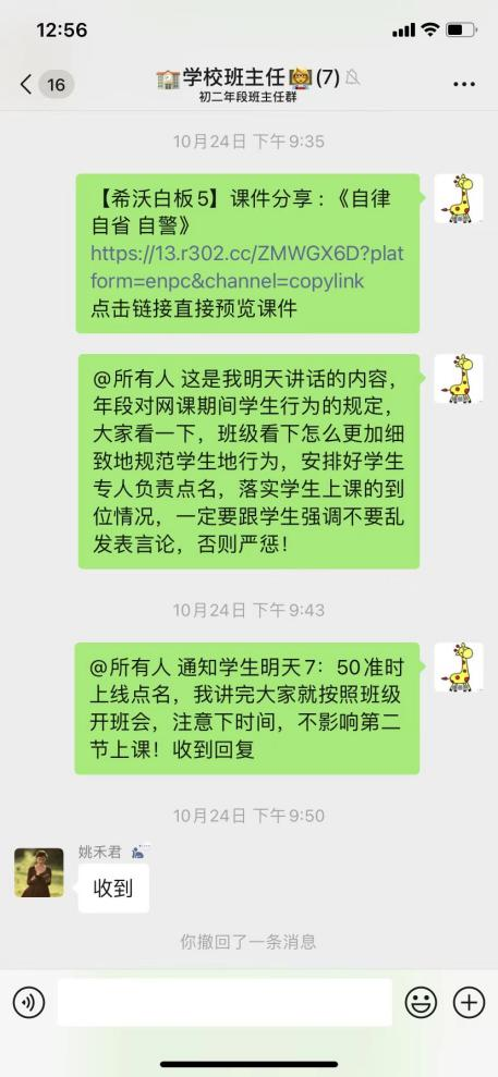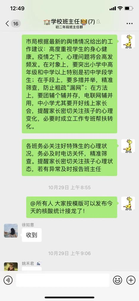 身为段长的陈清燕老师在接到转线上教学通知的第一时间,立即行动起来,编织好了年段班主任、任课老师、师生、家校之间的教学网络和学生的学习网络。组织年段班主任做好前期准备工作,开好线上段会和班会,同时组织年段任课老师调试线上教学直播设备,密切关注年段内学生的上课到位情况和作业缴交情况,指引积极正面的言论导向,保障线上教学有序进行。及时协调班主任收集学生和家长的防疫资料,确保防疫工作的顺利开展。对线上教学情况进行阶段分析总结,提出下一阶段需要重点关注和改进的问题。