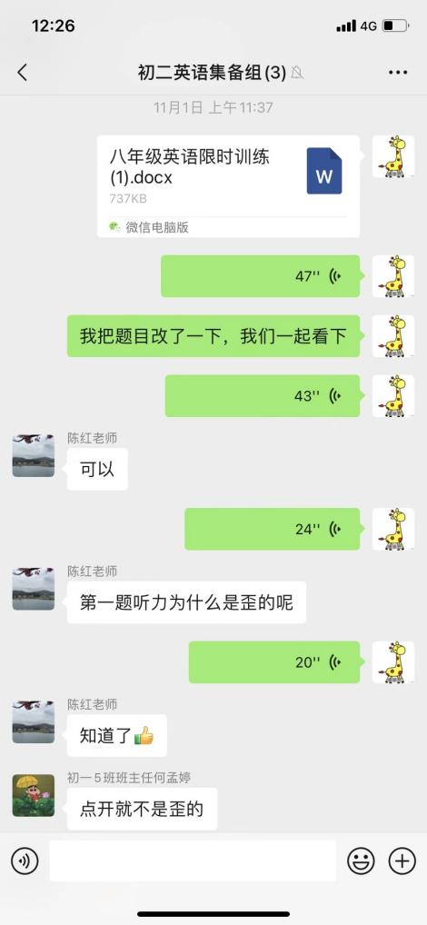 忙碌的同时,陈清燕老师没有忽略自己的教学本职工作,仍然一丝不苟地认真备课,保证线上教学效果。家校协作督促学生按时按量完成作业,作业做到详批详改。及时与家长沟通孩子线上教学出现的问题,提出有针对性的建议。由于英语学科学习需要学生坚持背默和口语习惯,为了督促学生,布置学生提交闭眼背诵视频,维持学生良好的学习习惯。