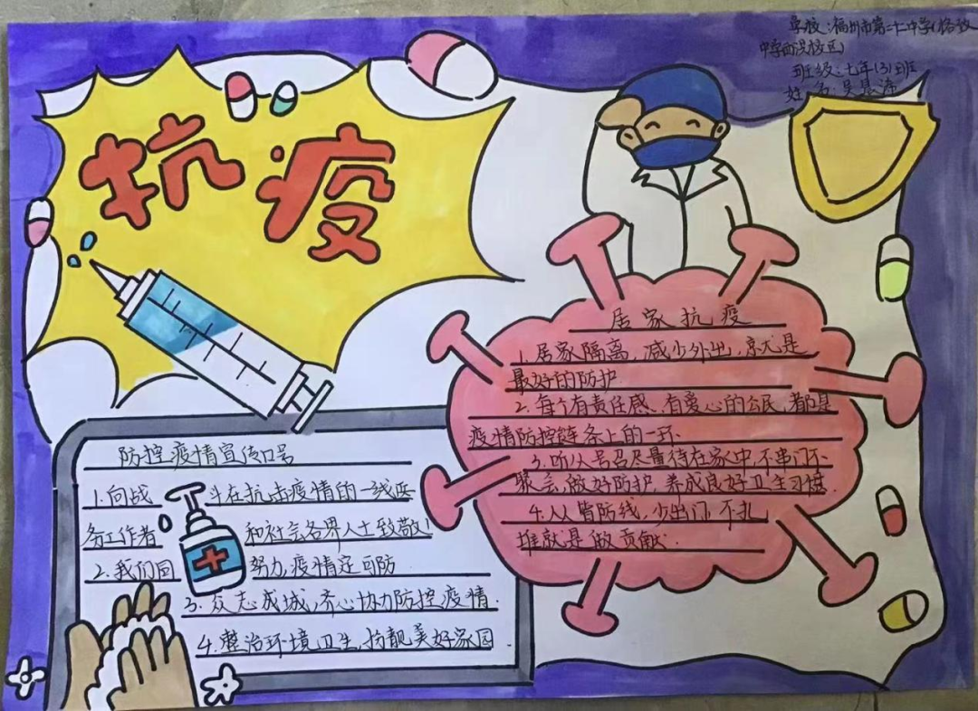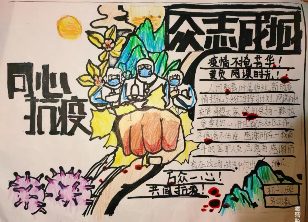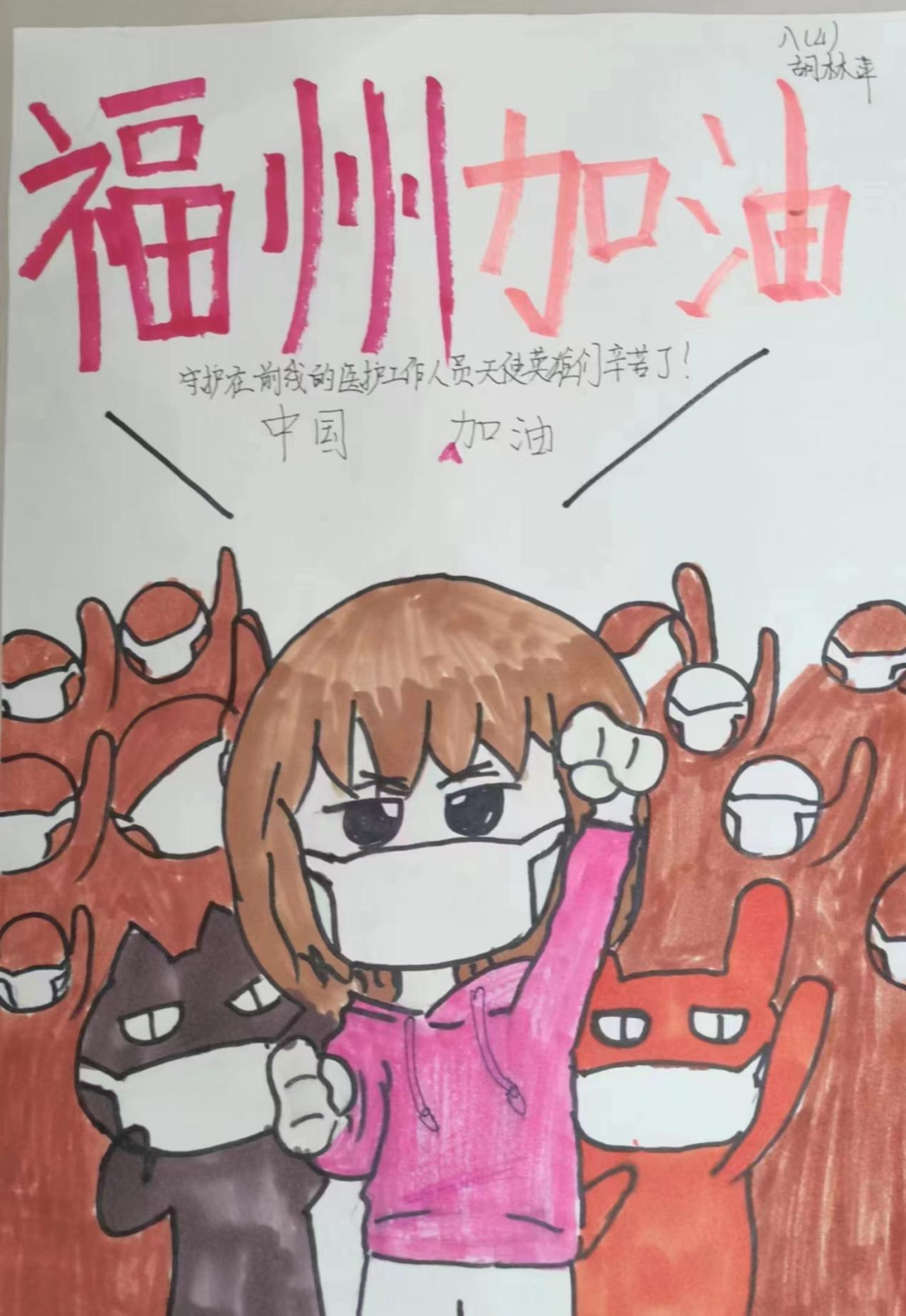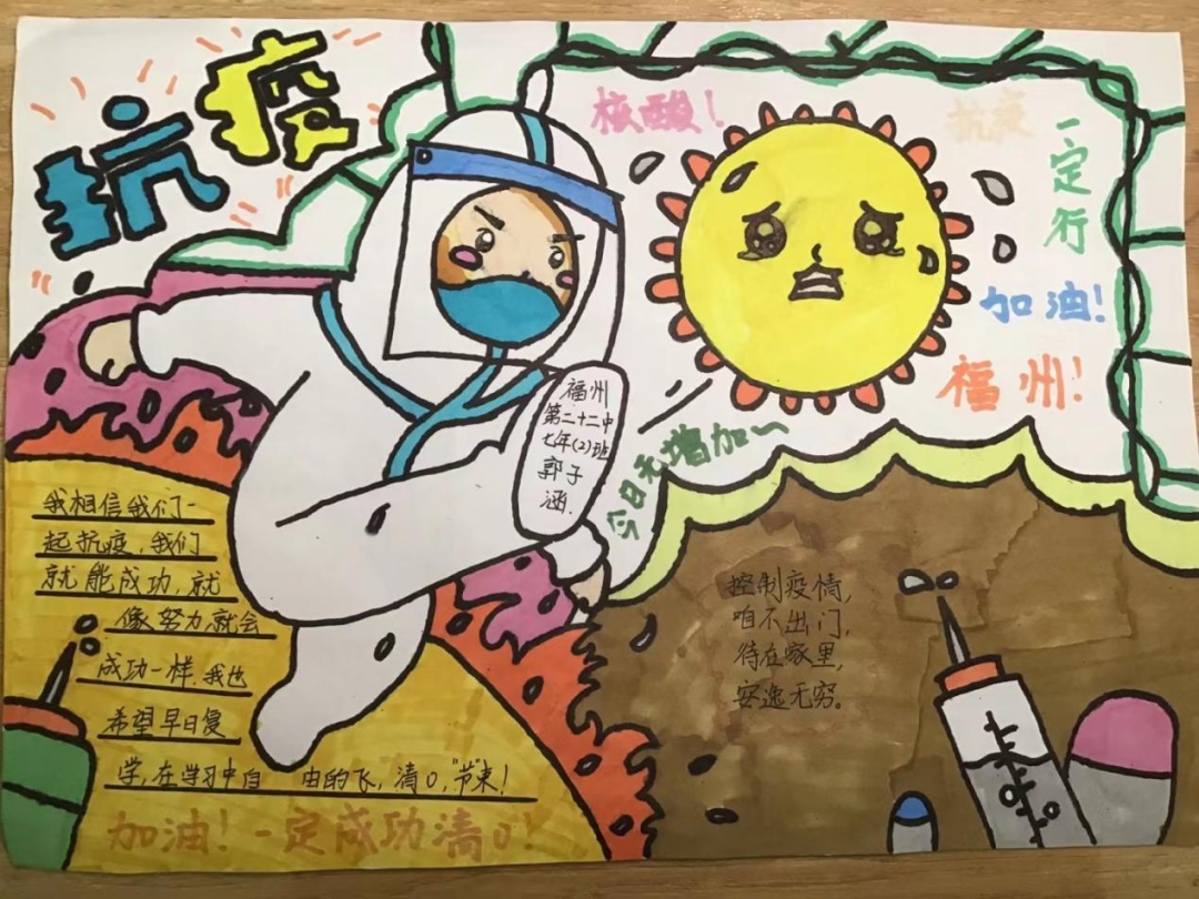 书画传情振士气,疫情无情人有情。少先队员们以绘画和手抄报宣传防控知识,描绘战疫画面,抒写战疫心声,吹响战疫集结号,坚定必胜信念,为福州加油!