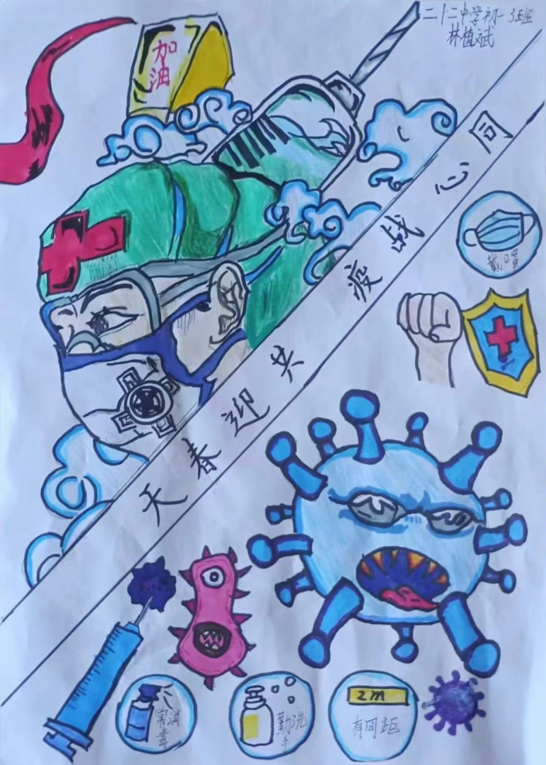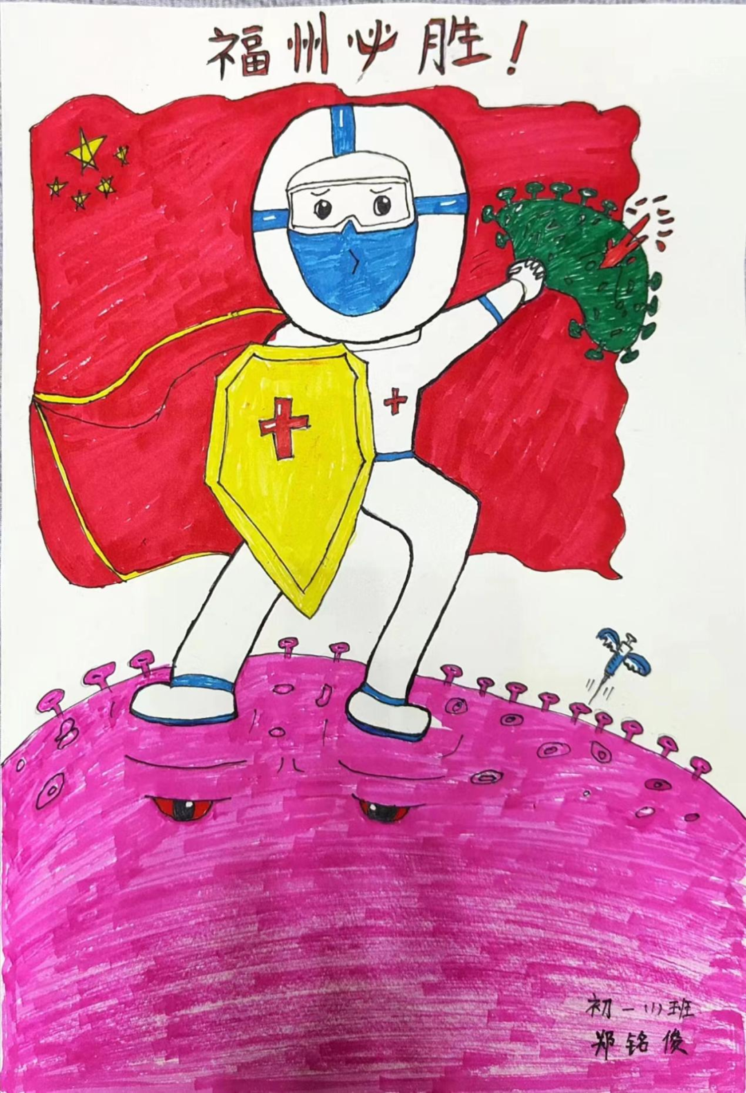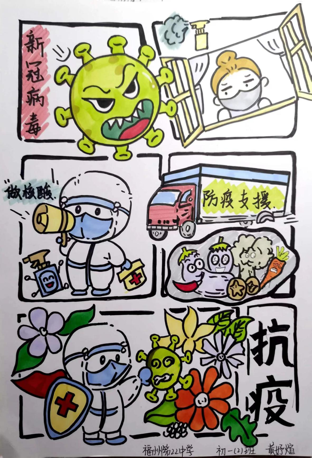 书画传情振士气,疫情无情人有情。少先队员们以绘画和手抄报宣传防控知识,描绘战疫画面,抒写战疫心声,吹响战疫集结号,坚定必胜信念,为福州加油!