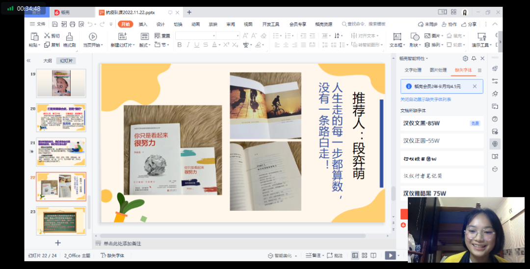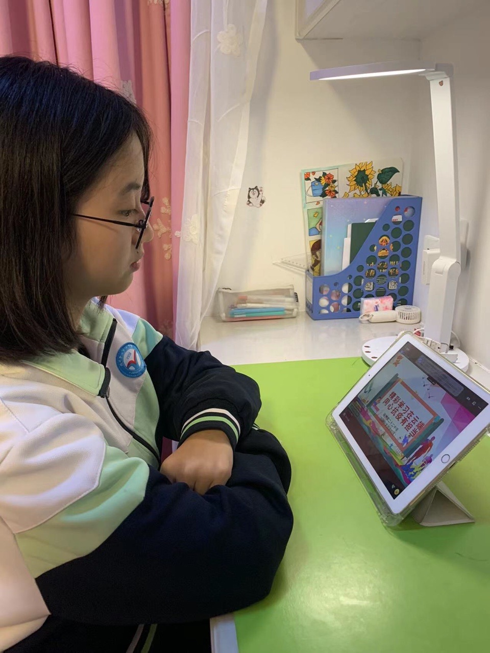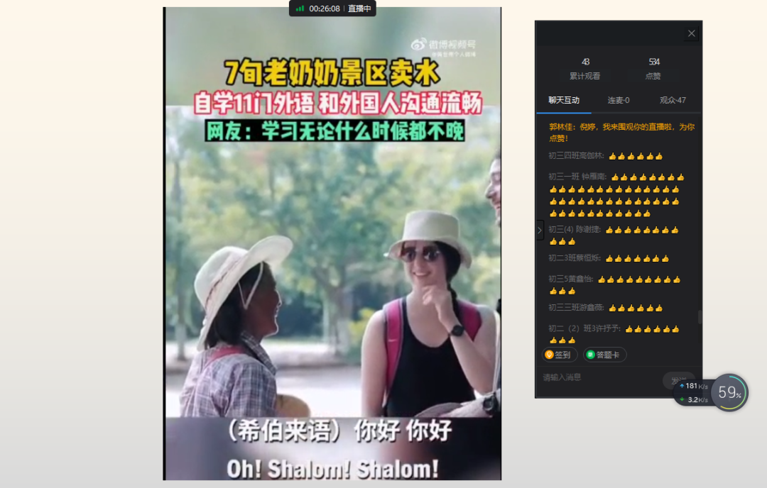 居家学习要保质,不负“宅”时光。倪婷老师向大家分享了一段小视频——7旬老奶奶自学11门外语,和外国人无障碍沟通的励志故事,希望大家严于律己、坚持学习、永不“掉线”。