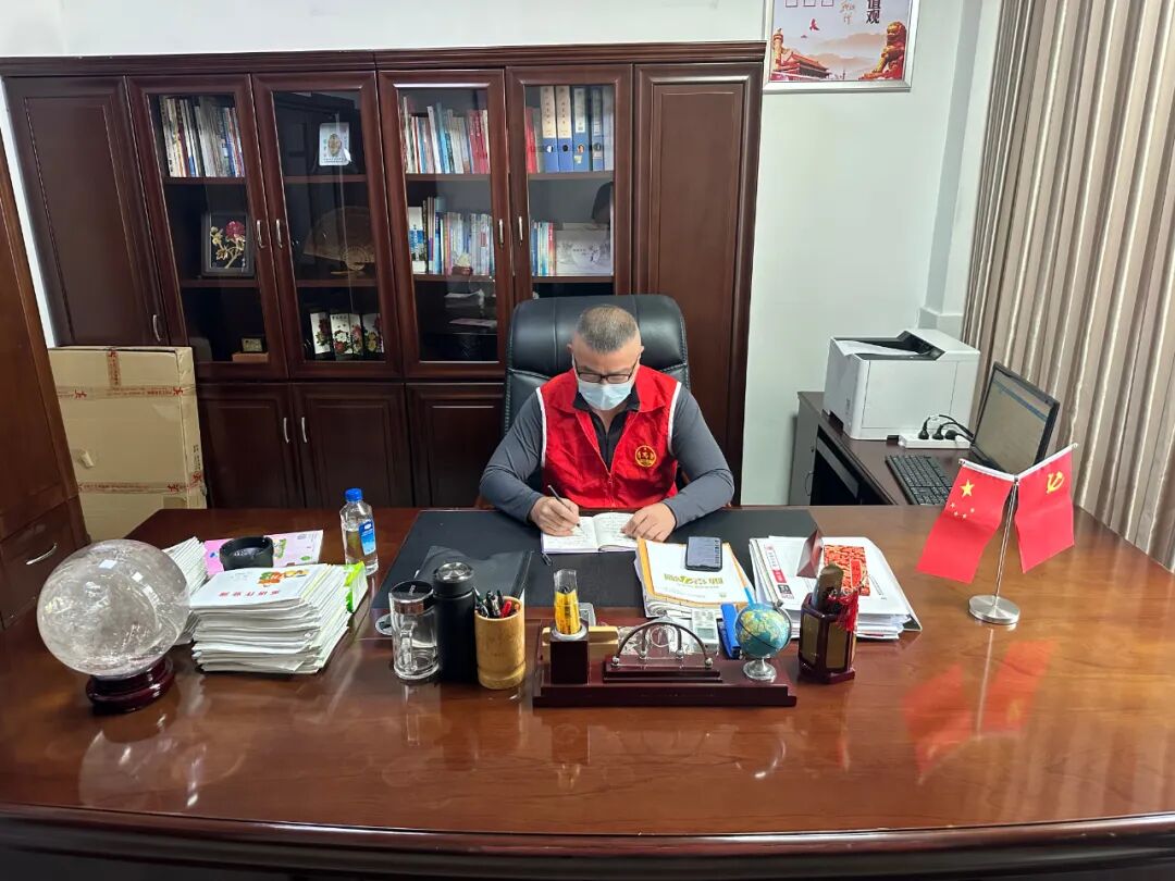 校办公室主任党员刘俊杰老师积极响应党总支号召和部署,做好党员先锋队和党员志愿者活动的组织协调工作,以及各项宣传工作,协助总保处每天收集、核对和上报教职工防疫信息,统筹协调各处室日常工作。