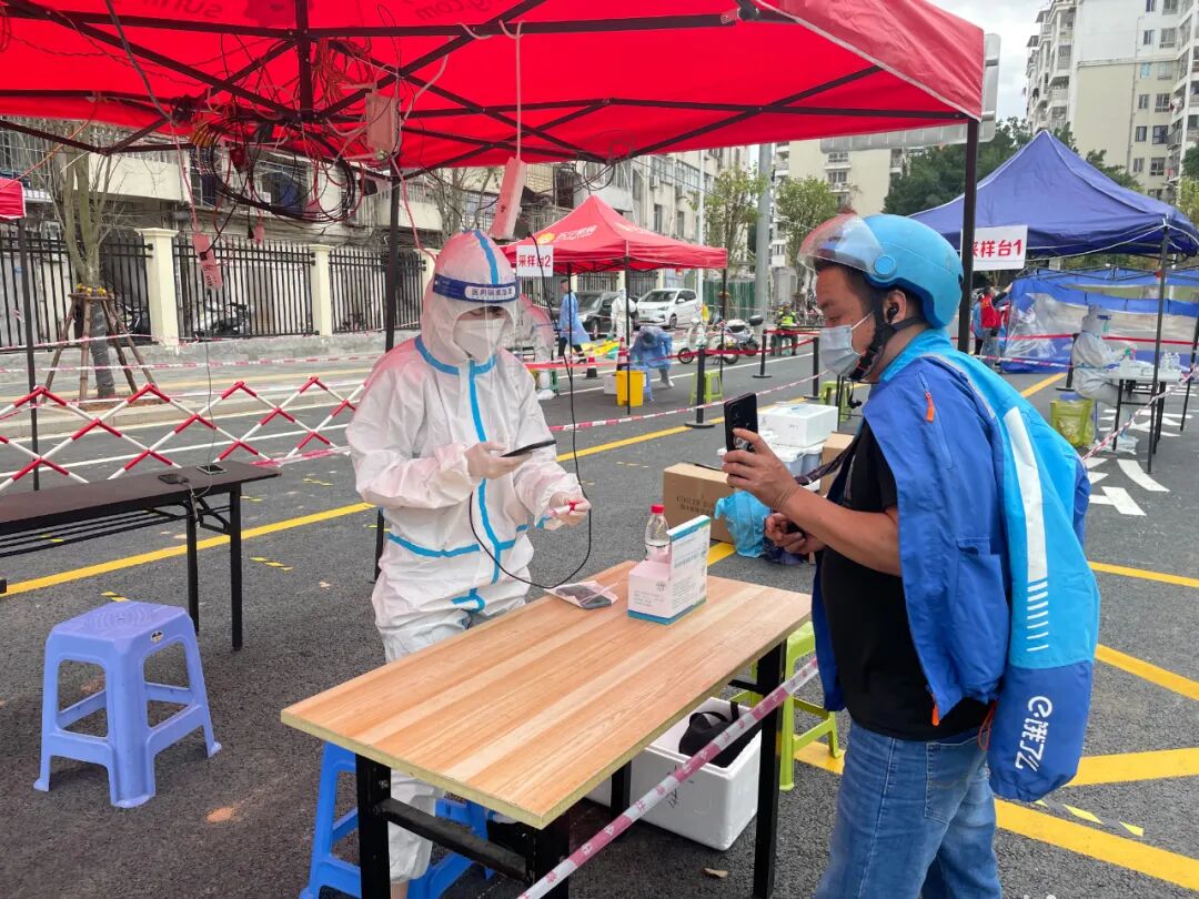 党员志愿服务队校医林少敏:10月29日早上5:45我到达指定地点,换上防护服后迅速投入工作。作为校医,能在疫情形势严峻时刻为社会贡献绵薄之力是我的荣幸。抗疫工作还没结束,面对疫情,只要我们快一分,居民就安全一分。