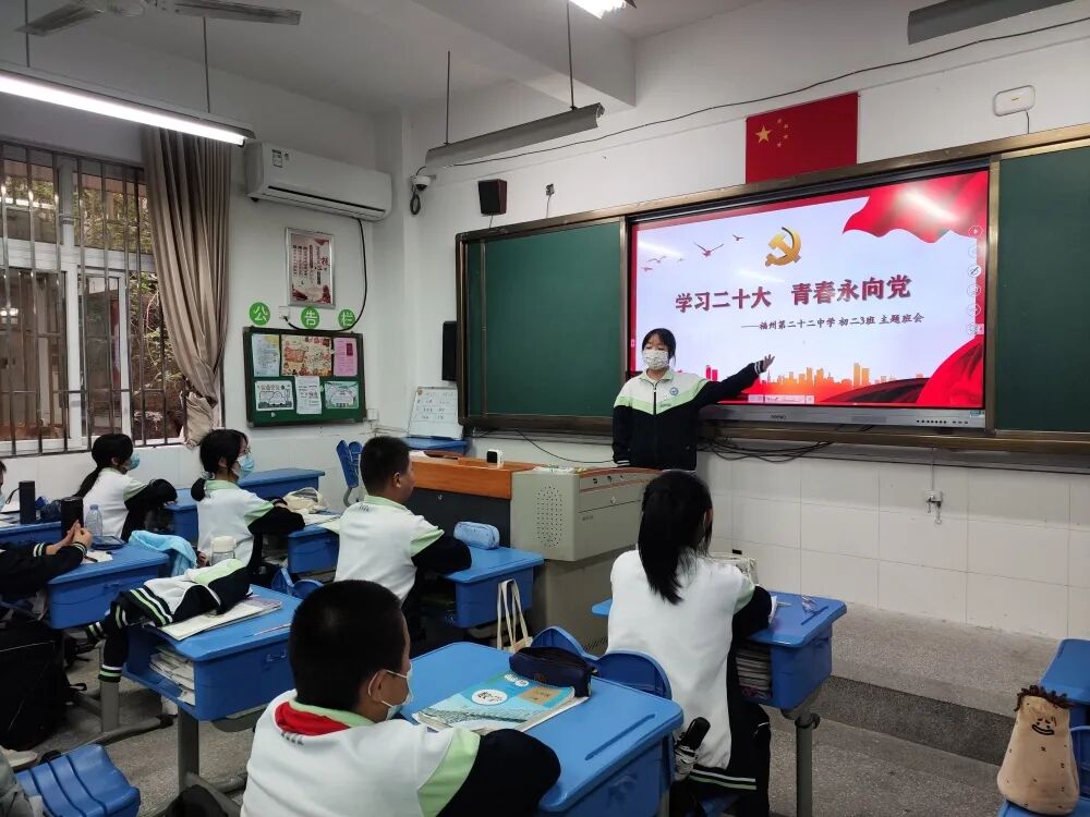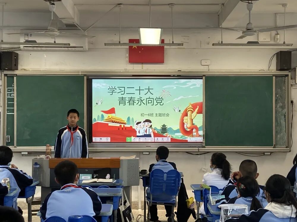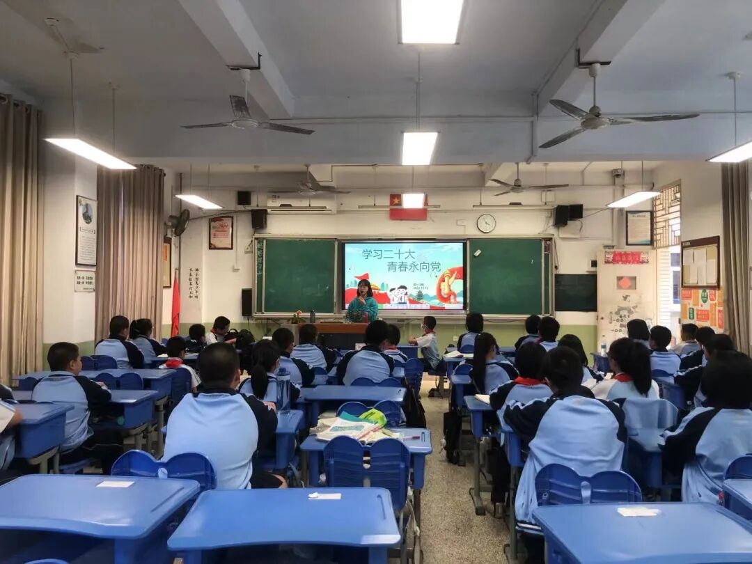 10月18日,为迎接党的二十大胜利召开,进一步激发青少年爱国、爱党的情怀,我校德育处、团委、少先队组织各班召开“学习二十大,青春永向党”为主题的班团会课活动。