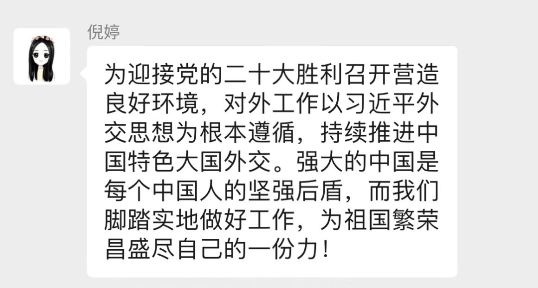 旗帜引领方向,奋斗开创未来。新的历史征程上,我们要更加紧密团结在以习近平同志为核心的党中央周围,以习近平新时代中国特色社会主义思想和习近平外交思想为指引,秉持天下胸怀,践行为国为民,立足教育岗位,不忘“立德树人”初心,踔厉奋发,勇担“为党育人、为国育才”使命,迎接党的二十大胜利召开!