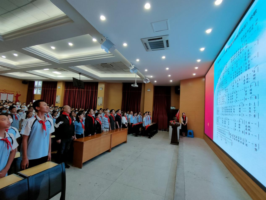 全体师生齐声高唱《中国少年先锋队队歌》,大家斗志昂扬,精神饱满,嘹亮的歌声响彻整个会场。少年强则国强,卫家国,担重任。