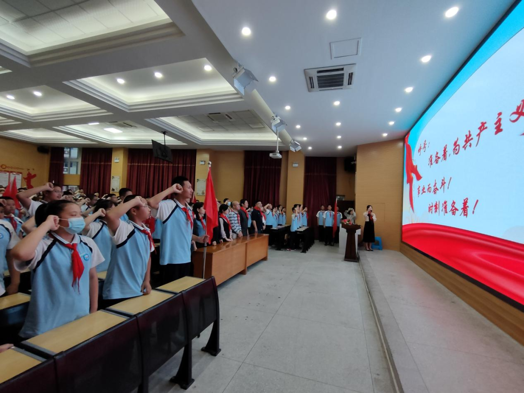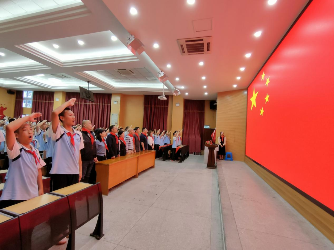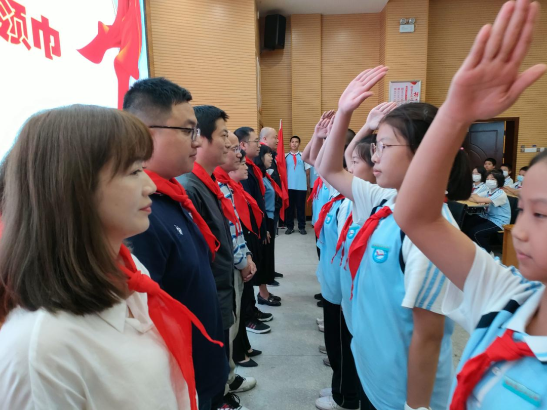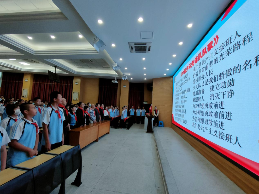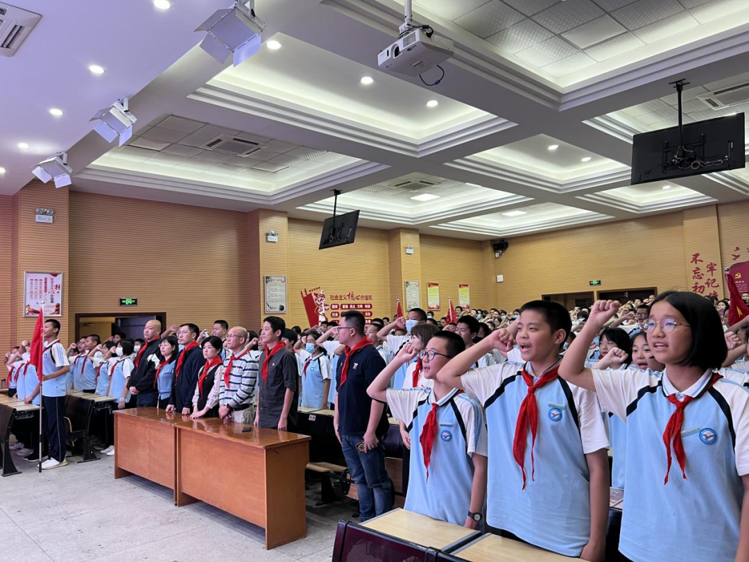 校大队辅导员倪婷老师带领全体少先队员呼号,铿锵有力的誓言在会场上空久久回荡,展现了队员们饱满的精神风貌。