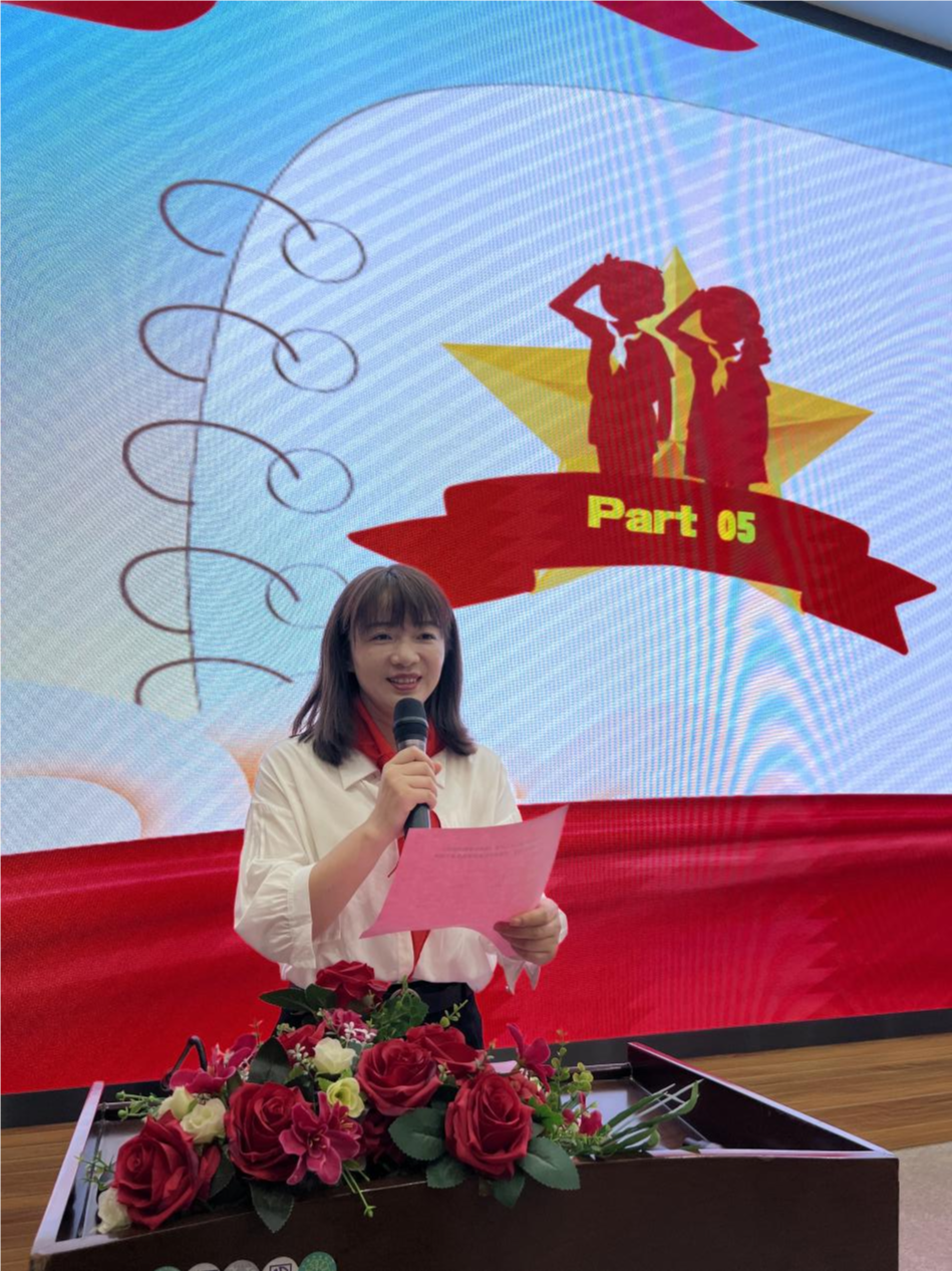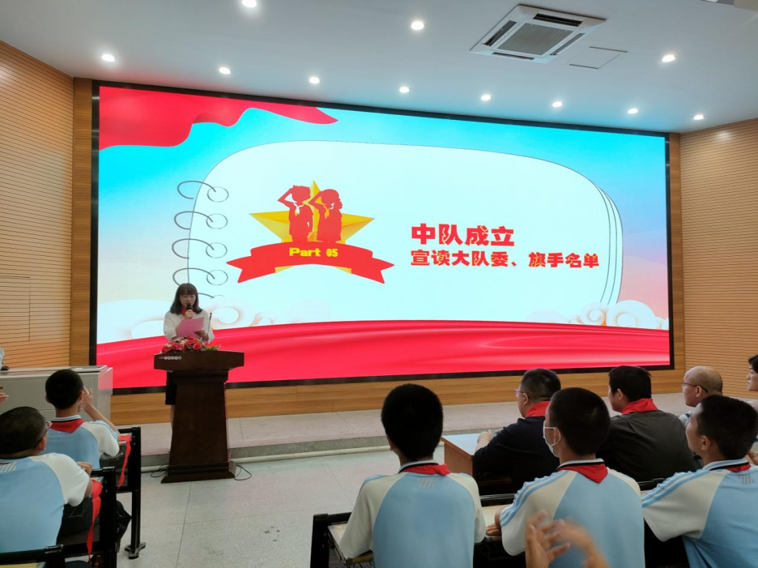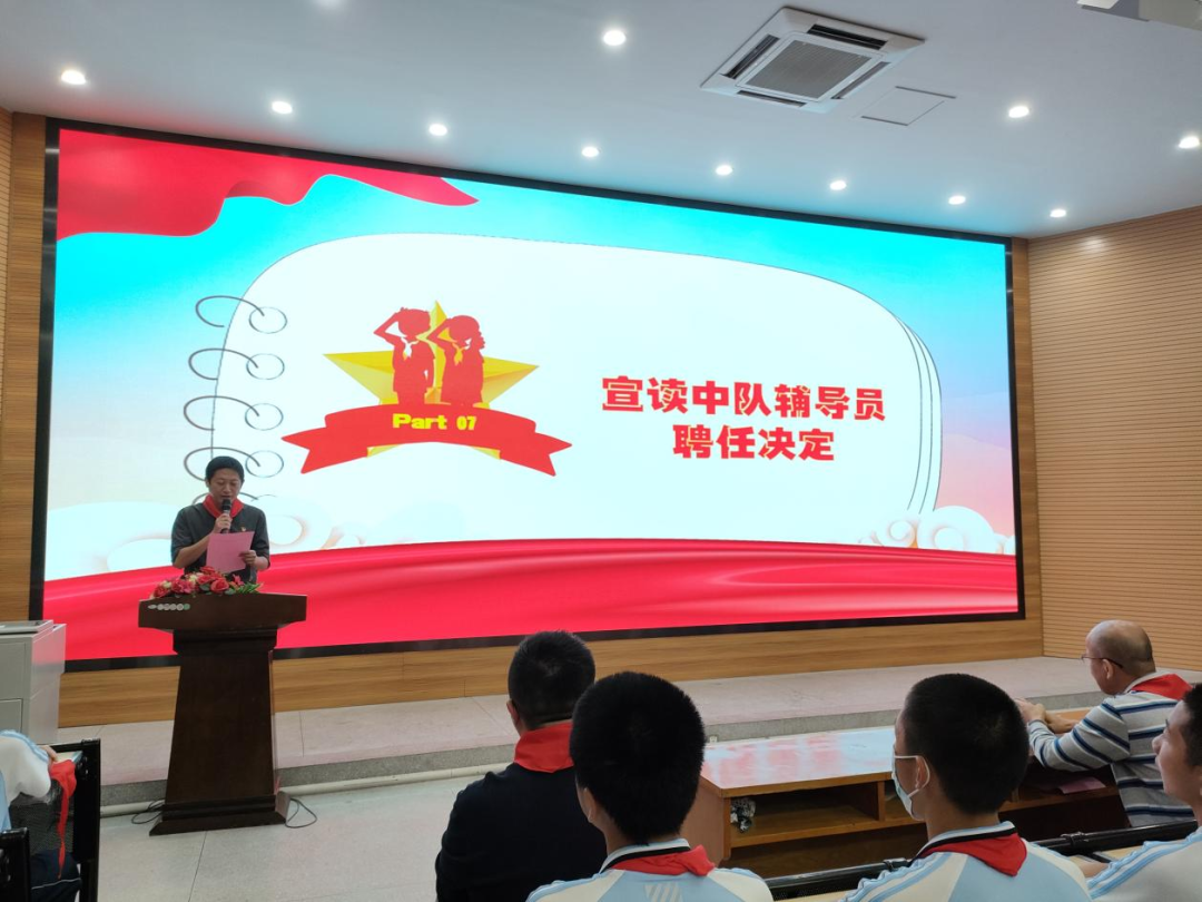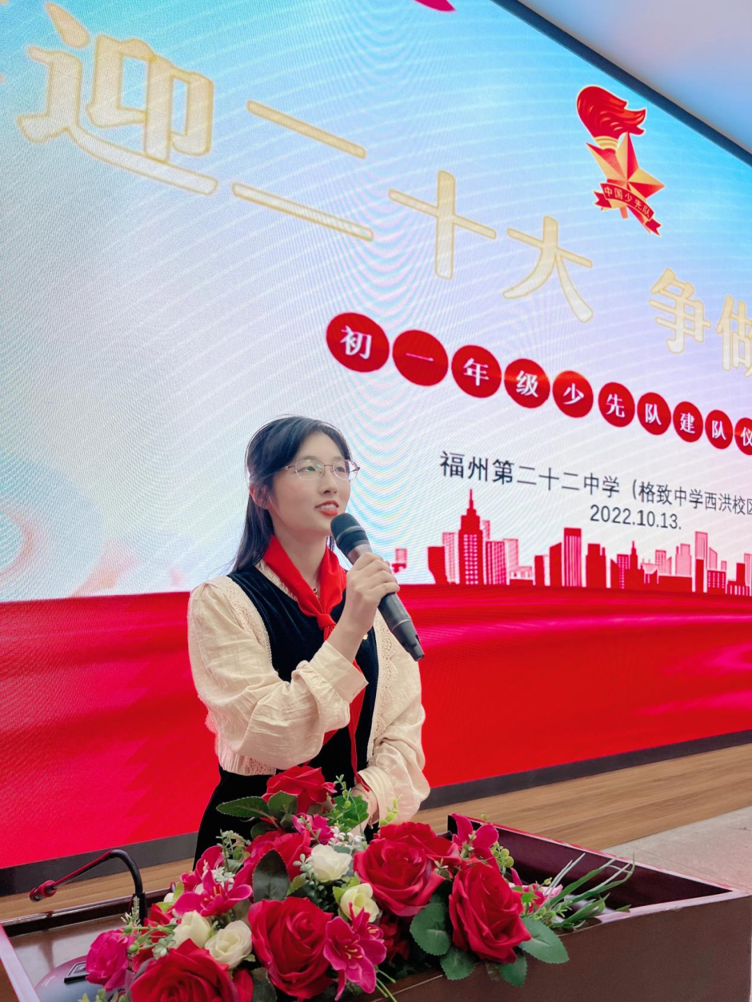校团委书记陈晓霞老师宣读点点taptap官网(格致中学西洪校区)组建2022级少先队大队的决定,并宣读大队委、旗手以及下设中队名单。
