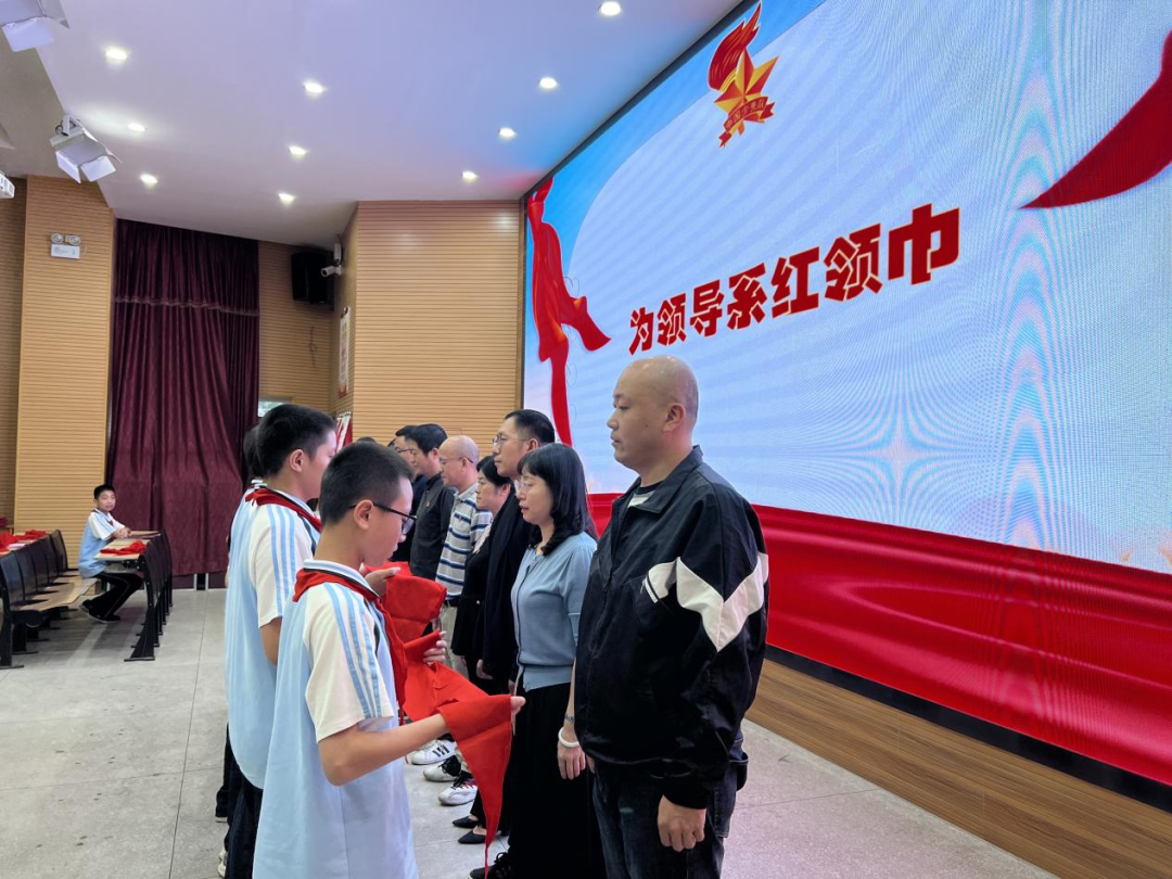 伴随着《红领巾之歌》轻快的曲调,少先队员代表为校领导敬献红领巾。