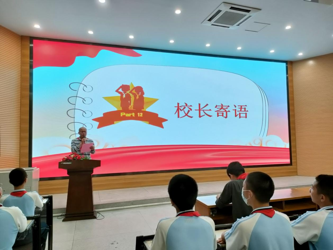 陈龙耀校长激励少先队员们用实际行动为红领巾增添新的荣誉、新的光彩,努力成长为新世纪祖国建设需要的栋梁之才,树立远大志向,勤奋学习、快乐生活、健康成长,早日把自己培养成为有理想、有道德、有文化、有纪律的社会主义事业接班人!