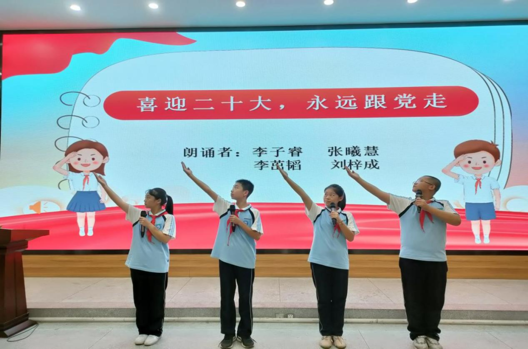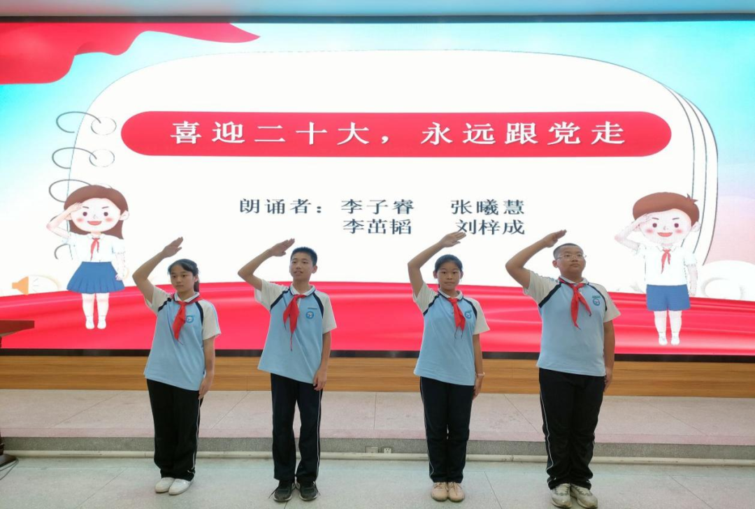 少先队员代表朗诵《喜迎二十大,永远跟党走》将现场气氛推向了高潮。请党放心,强国有我!铮铮誓言向青春,相信少先队员们一定能够奋发图强,奋勇拼搏!