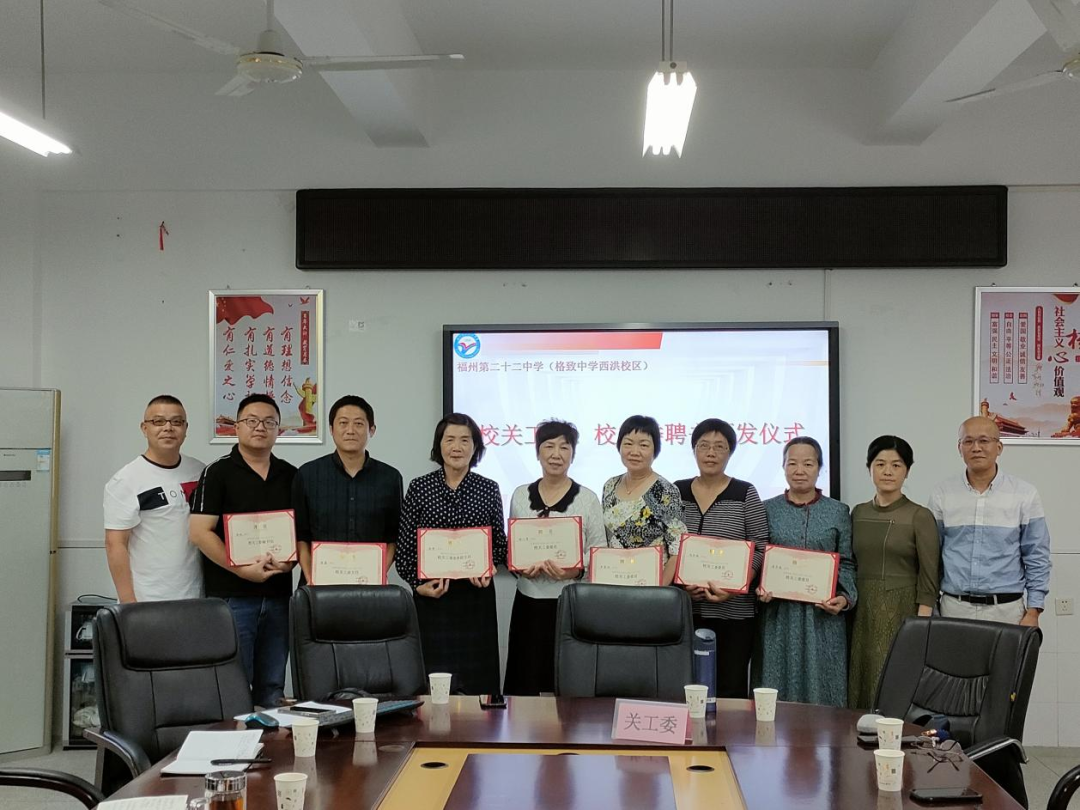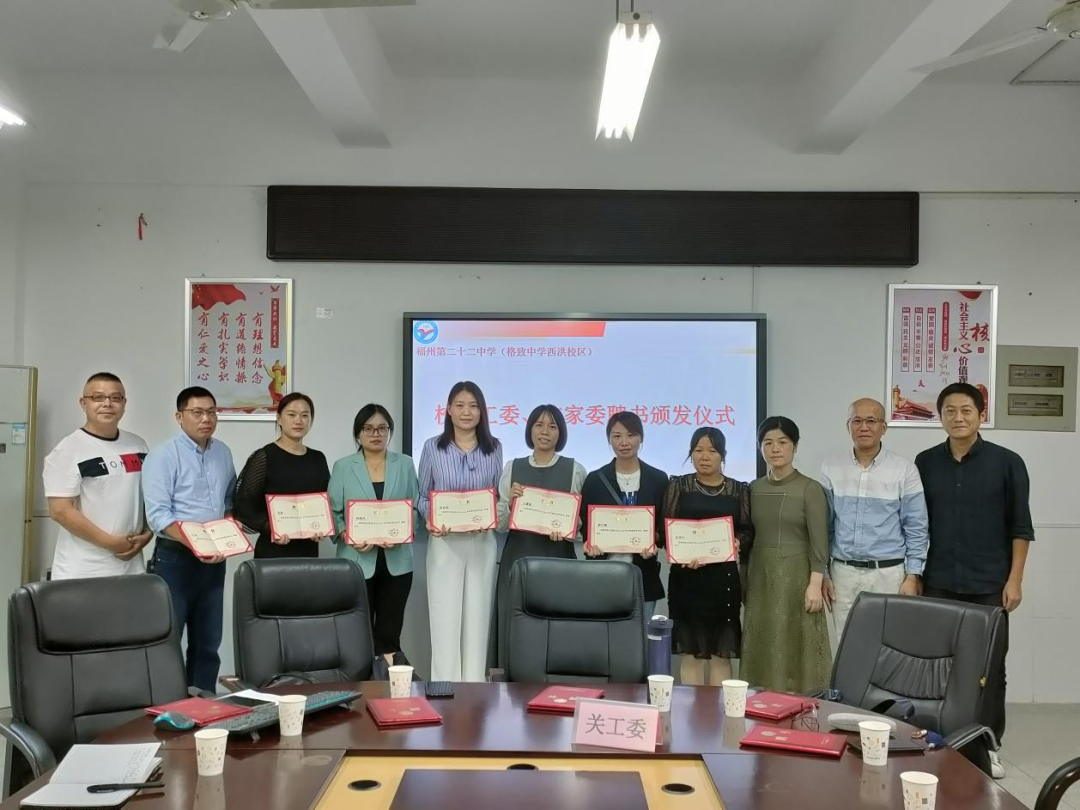 校领导向各位校关工委老师和校家委会成员颁发聘书,新一届校关工委和校家委会正式成立。