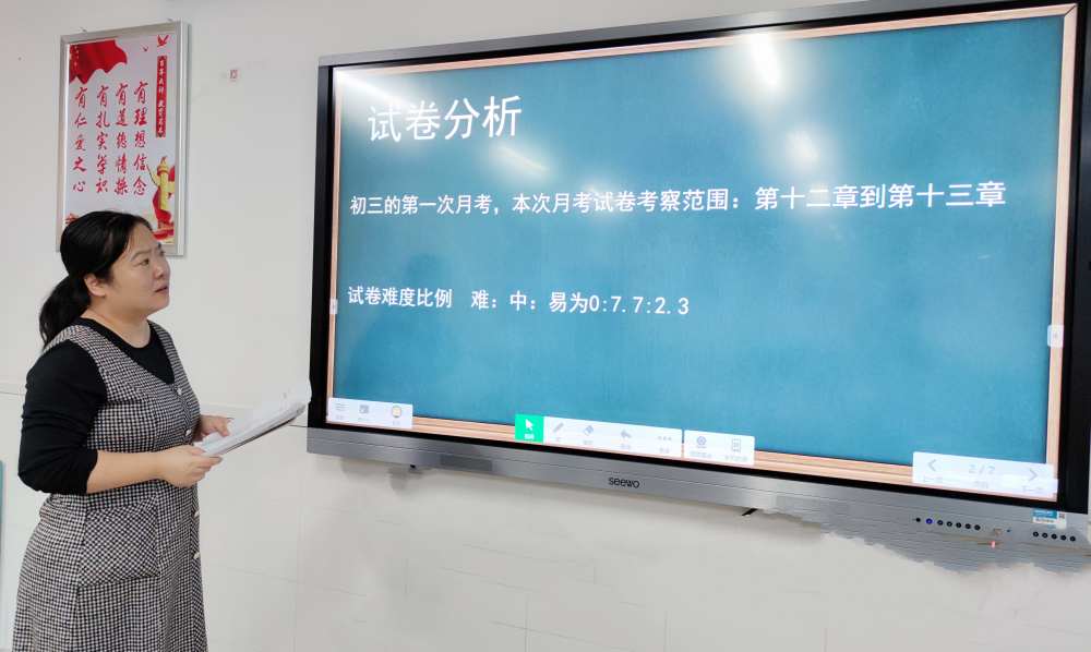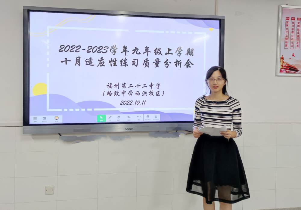 倪婷段长详细分析了十月份适应性练习的考情,并针对各班实际情况提出了精准教学与精准学习相结合,课堂规范管理与学生思想动员相结合,良好的班风学风与家长配合相结合等建议与措施。