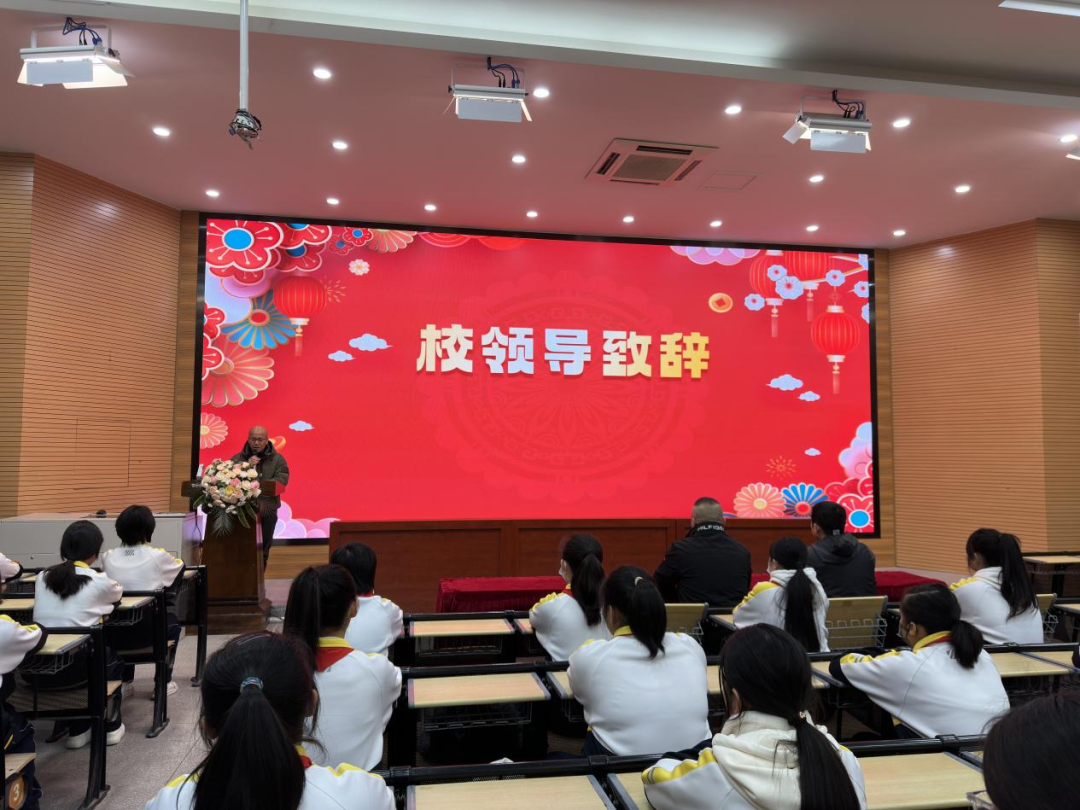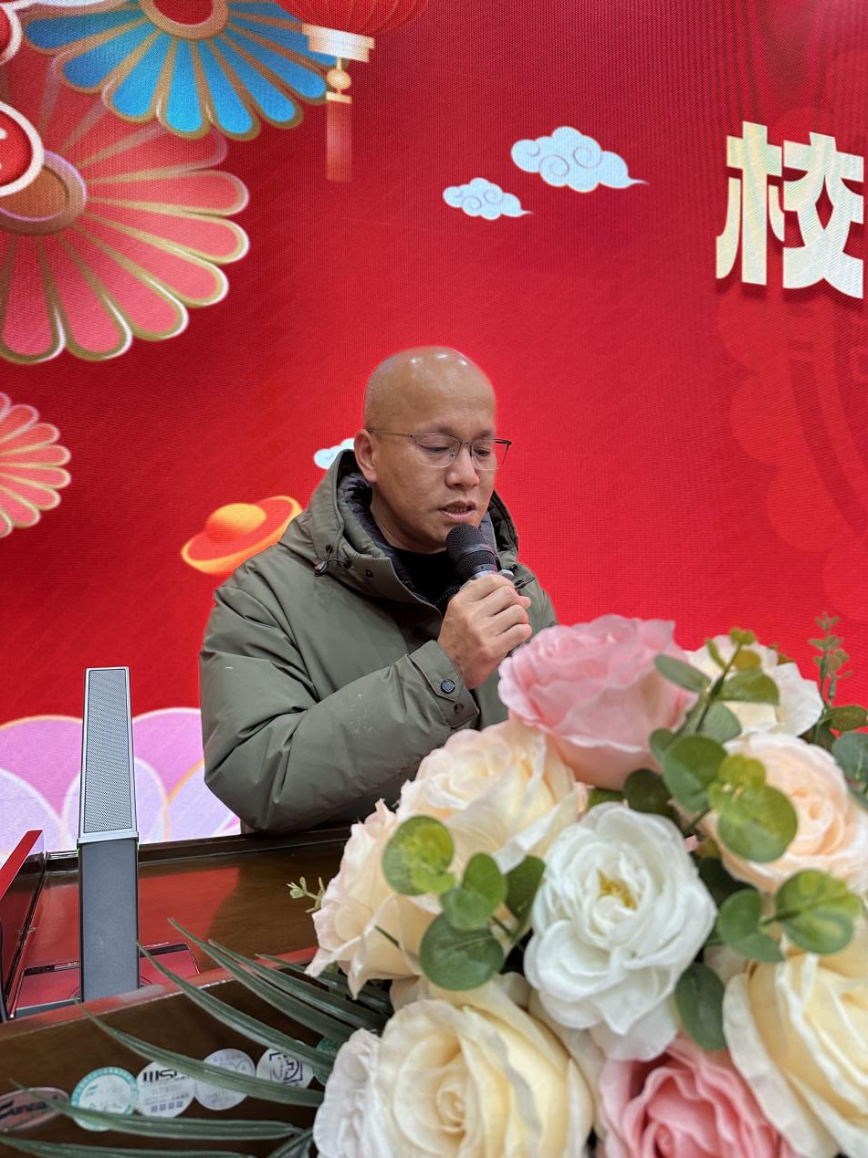 陈龙耀校长为开学仪式致辞。陈龙耀校长对全体师生致以新年的美好祝福,回顾了过去一年学校教育教学工作所取得的佳绩,勉励全体师生新学期更加奋发有为、锐意进取。