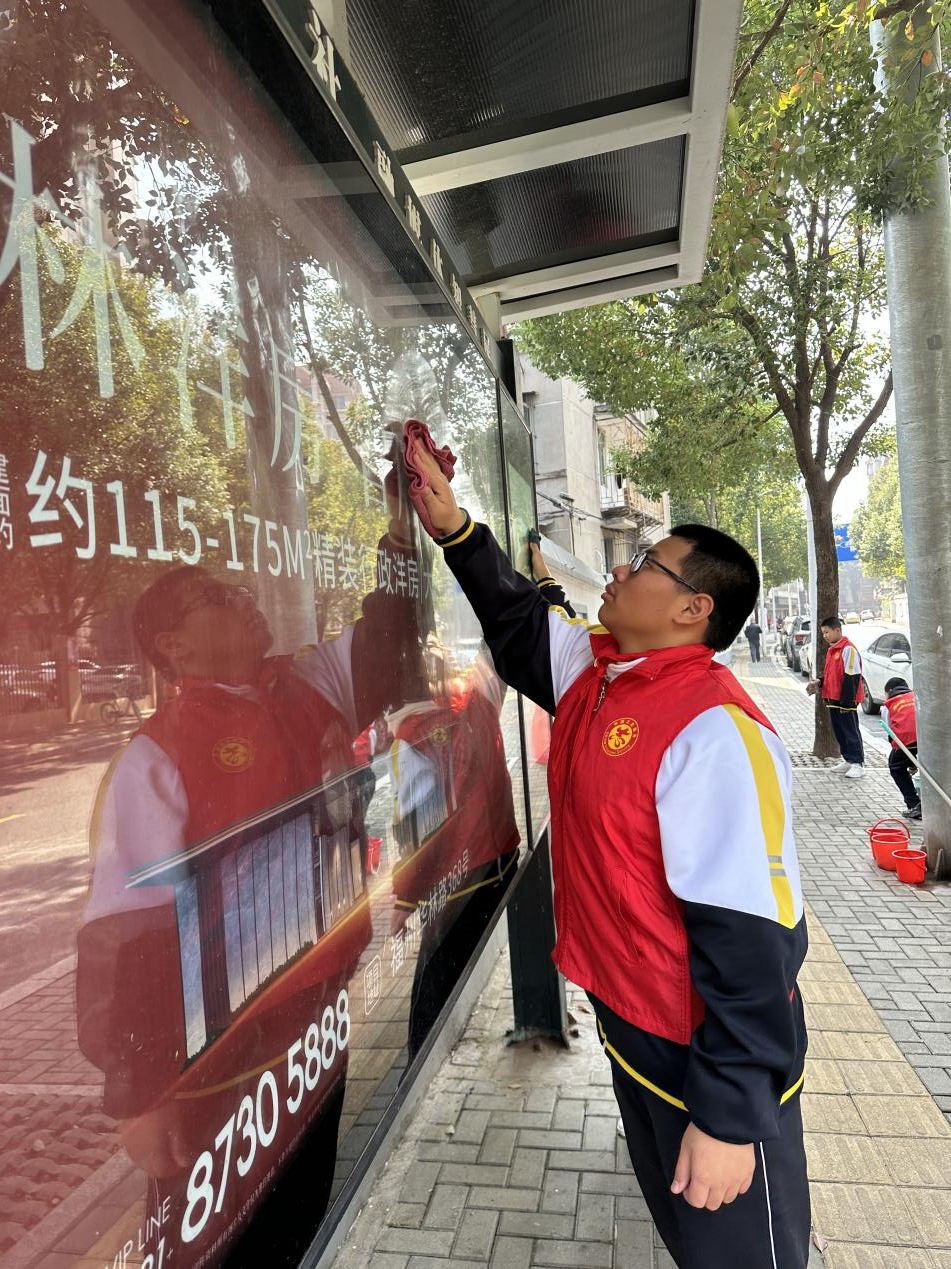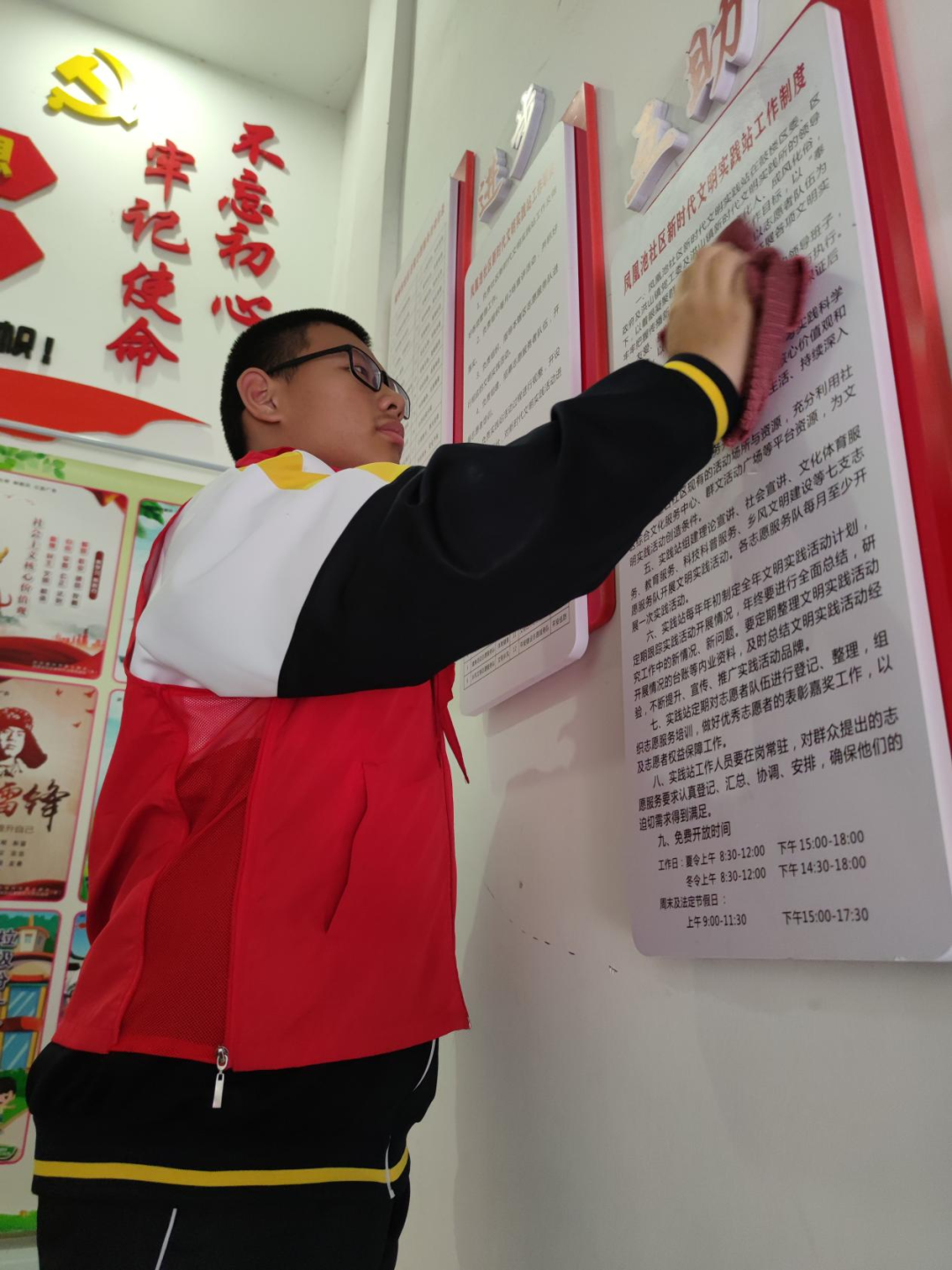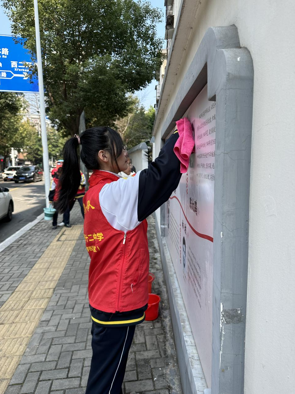 同学们学以致用、把对雷锋精神的传承体现在具体的行动中,志愿者们积极地在社区开展清洁卫生活动,认真地用抹布擦去柱体、墙面、路边陈设上的灰尘,让它们重新焕发应有的光彩,以实际行动践行雷锋精神,争做文明先锋。