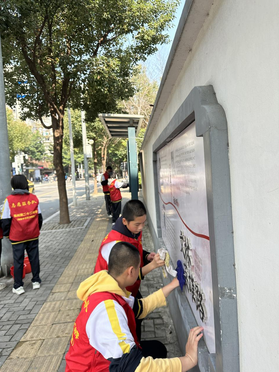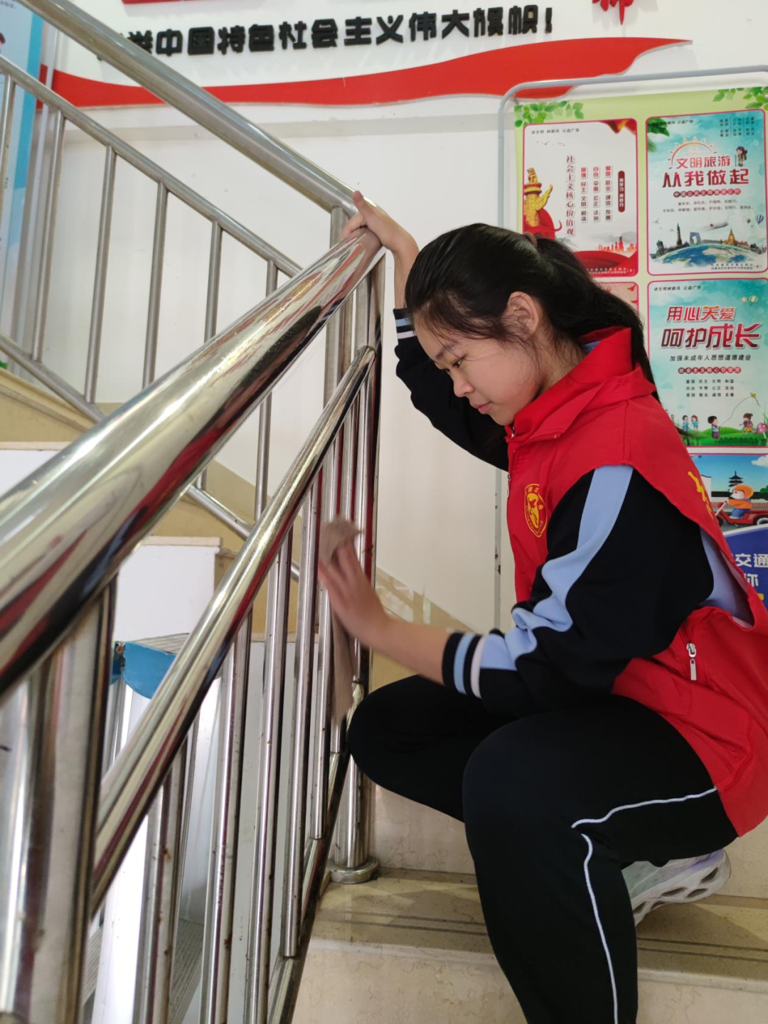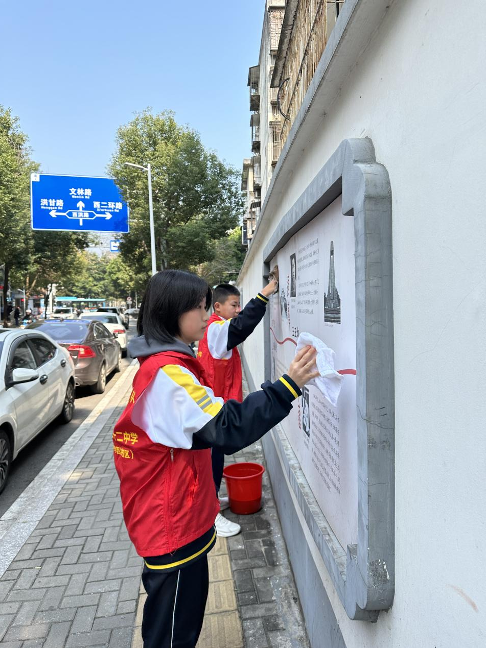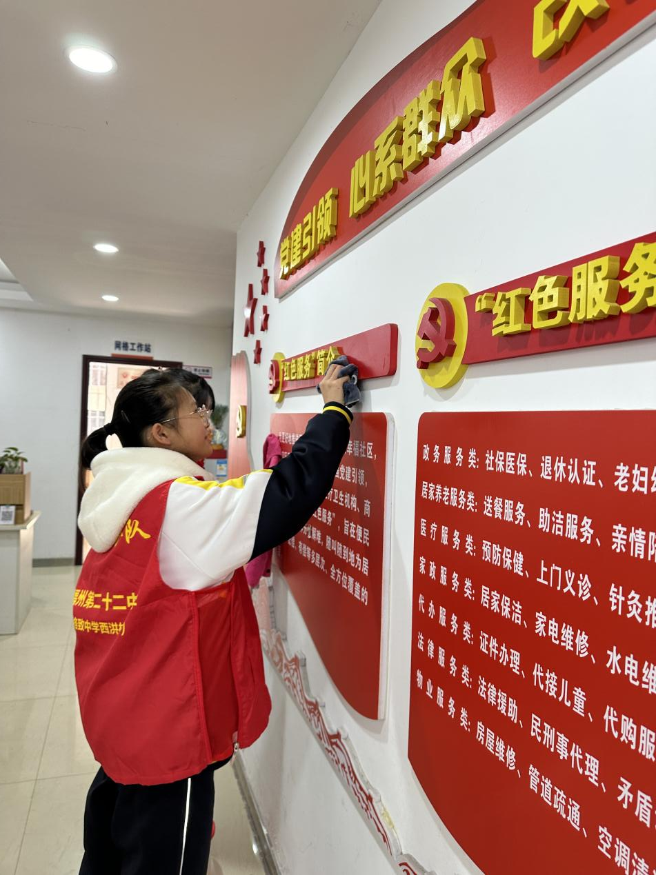 同学们学以致用、把对雷锋精神的传承体现在具体的行动中,志愿者们积极地在社区开展清洁卫生活动,认真地用抹布擦去柱体、墙面、路边陈设上的灰尘,让它们重新焕发应有的光彩,以实际行动践行雷锋精神,争做文明先锋。