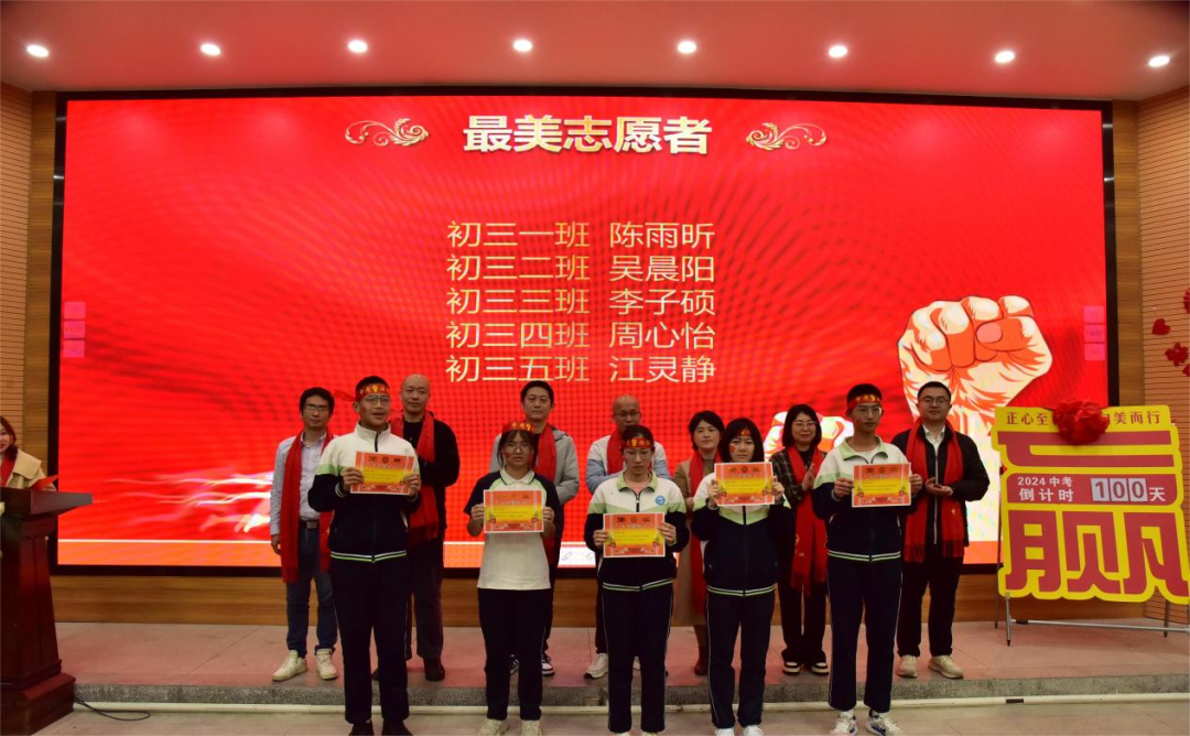 随后,我校陈龙耀校长发表了热情洋溢的致辞。他强调了中考对于每一个学生成长的重要性,勉励学生们要珍惜剩下的百日时间,明确目标,坚定信心,勇攀高峰。他向辛勤工作、无私奉献的全体初三教师表示深深的敬意和衷心的感谢!向孜孜以求、奋力拼搏的全体初三同学表示真诚祝福和美好祝愿。校长的话语温暖而坚定,给在场的师生们带来极大的鼓舞和动力。