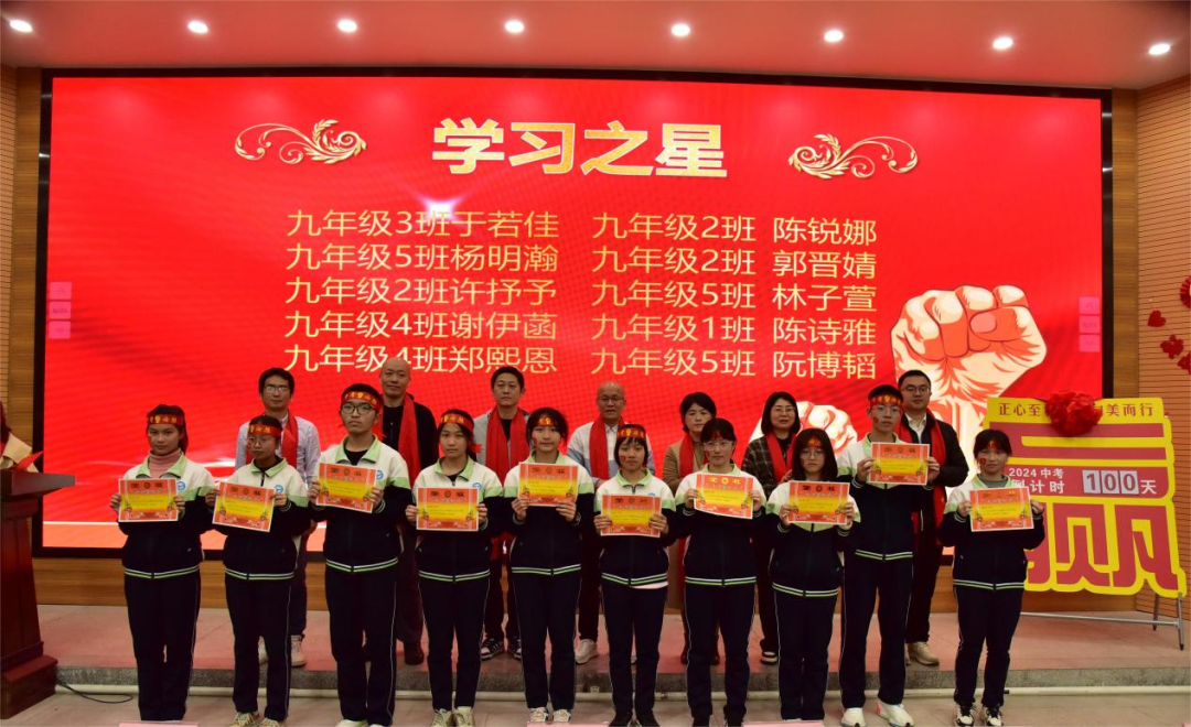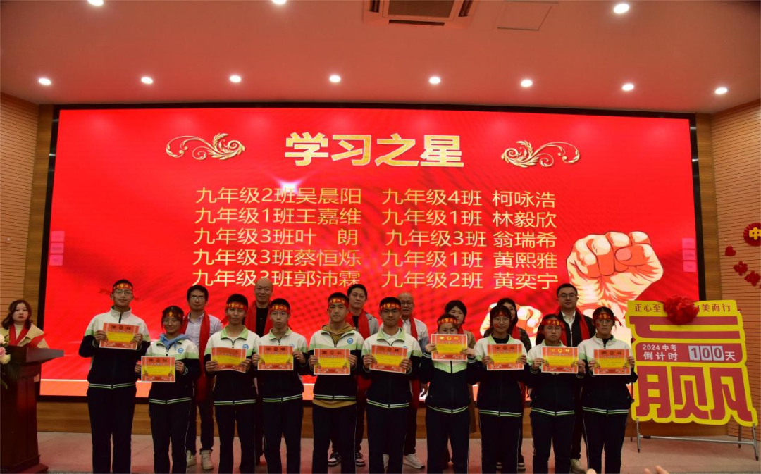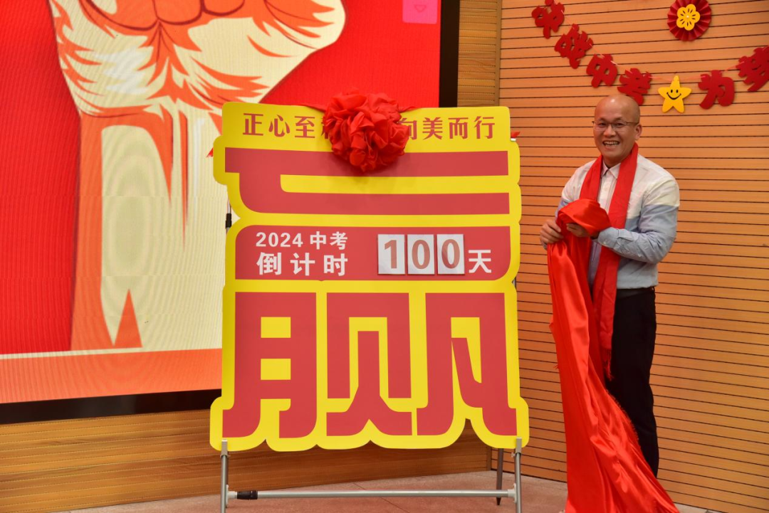奋战百日,决胜中考。陈龙耀校长为2024年中考倒计时100天揭牌,以此来提醒同学们,2024年中考已经进入了最后的备战阶段,此时正是弯道超车的理想时机。克勤克俭、无怠无荒!