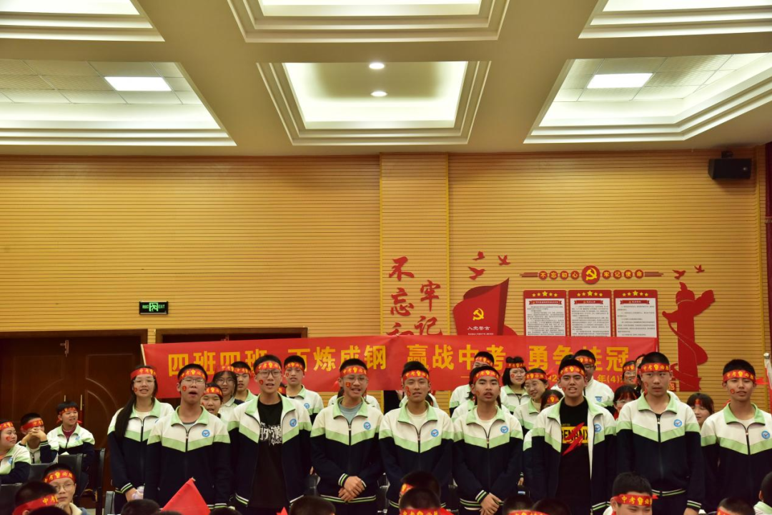 大会在雄壮的国歌声中拉开序幕,伴随着庄严的旋律,九年级全体师生神采奕奕,目光坚定,高唱国歌,心中吹响决胜中考的号角。