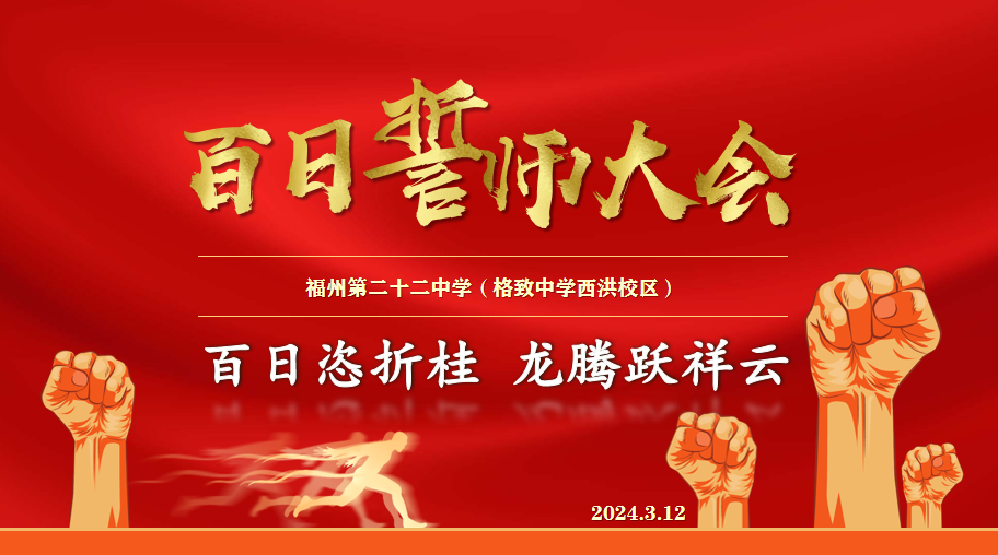 每个人心中都有一座山峰,雕刻着理想、信念与追求,当你不畏艰险、迎难而上时,每个脚印都是成功的路标,拼搏让过程更加完美,奋斗使结局不留遗憾。为了鼓舞九年级全体学生的士气,激励他们在剩下的100天里努力拼搏、决胜中考,2024年3月12日,我校2024届致远级百日誓师大会隆重举行。这次誓师,是圆青春梦想的动员令,是扬人生志气的进军号,是表必胜豪情的铿锵曲!