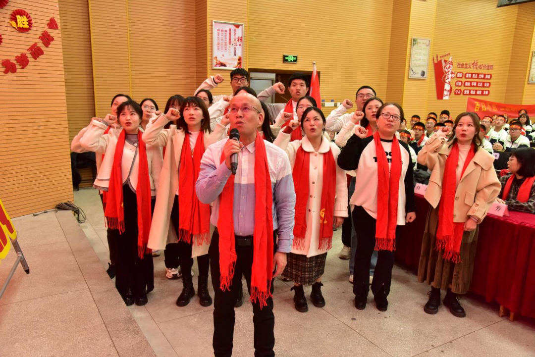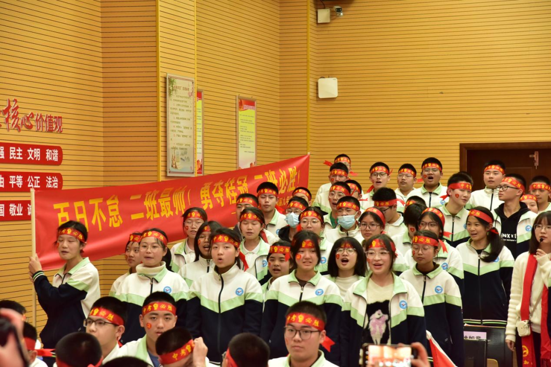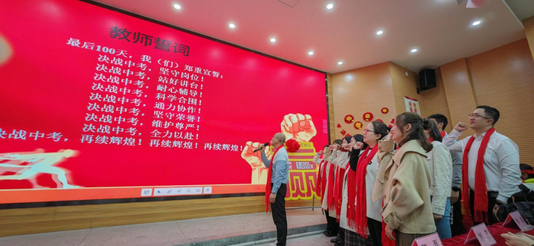 战鼓阵阵催人奋进,誓言声声激荡校园!在振奋人心的音乐声中,各班依次喊响班级口号,并集体宣誓。用铮铮誓言鼓舞士气,展现雄风,奏响备战中考、拼搏百日的“最强音”。