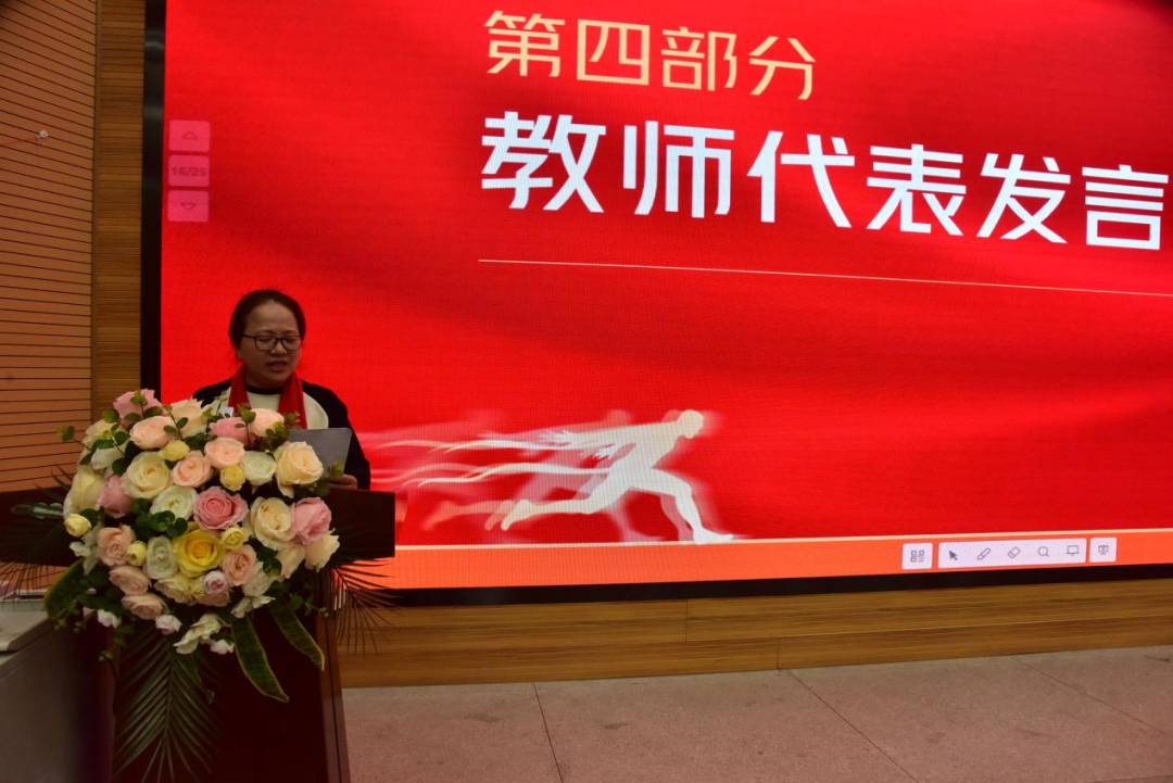 殷殷期盼,谆谆教诲。教师代表林佳隽老师上台与同学们分享她智胜中考的锦囊妙计。在日常教学中,佳隽老师总是春风化雨,倾囊相授,赢得了学生的一片好评。佳隽老师的发言,道出了初三老师的心声,字里行间都流露出初三教师的自信与坚定,以及对同学们的殷切期望。