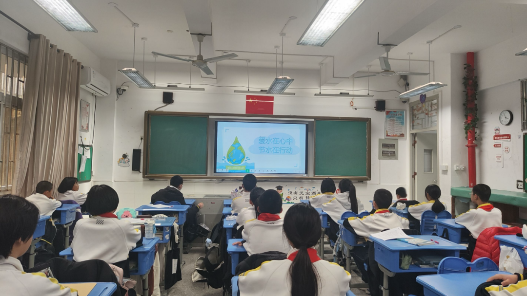 班会课上,班主任向学生们讲述了世界水日的由来、世界水资源现状、我国水污染问题、节约用水的重要性以及日常生活中节约用水技巧等知识。教育学生节约用水,保护水资源,从我做起,从身边小事做起。